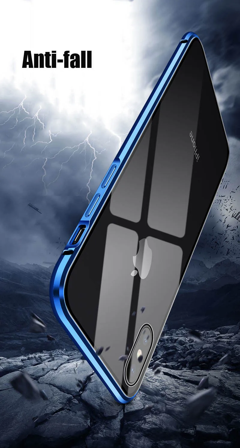 Магнитный адсорбционный металлический чехол для телефона iPhone 6s 8 7 Plus X двухсторонний стеклянный Магнитный чехол для iPhone X XS MAX XR 11 pro max