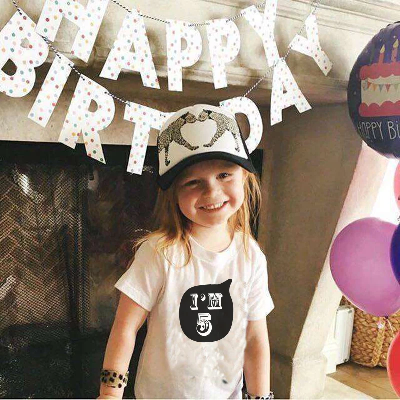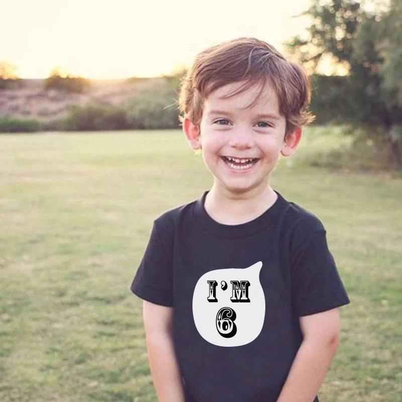 Детская футболка на день рождения I'm 1, 2, 3, 4, 5, 6 лет, хлопковая Футболка с принтом для мальчиков и девочек, праздничная футболка с короткими рукавами и круглым вырезом, топы для мальчиков и девочек