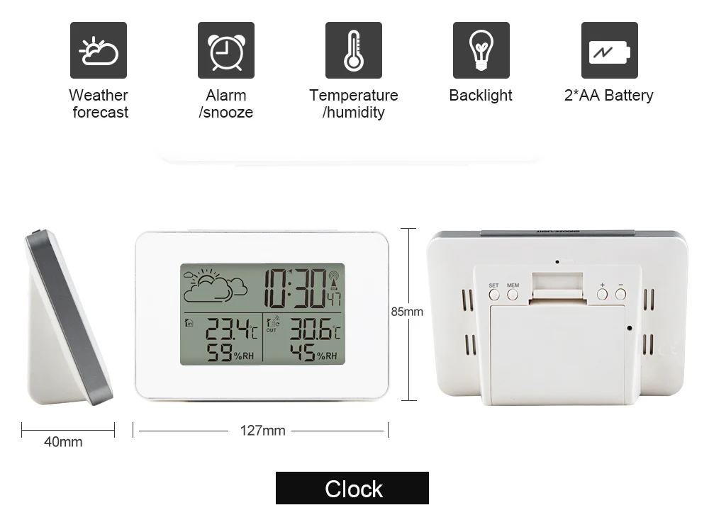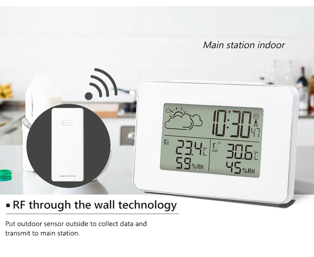 Метеостанция FanJu с будильником, электронный цифровой беспроводной сенсор для прогнозирования повтора, настольные часы с термометром и гигрометром