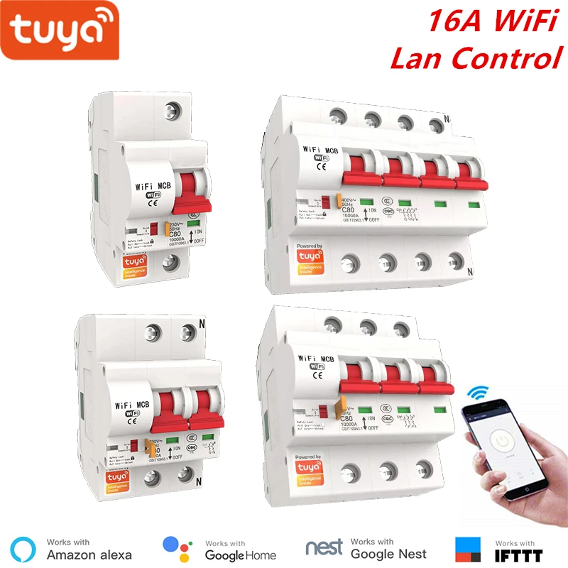 Автоматический выключатель Tuya Smart Life, 16 А, поддержка Wi-Fi, поддержка Alexa, Echo, Google