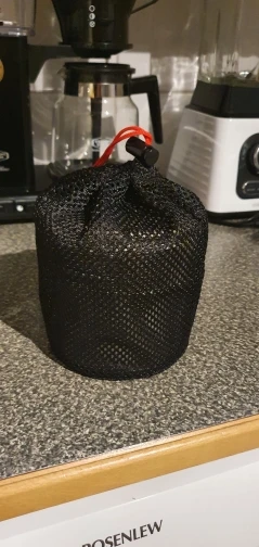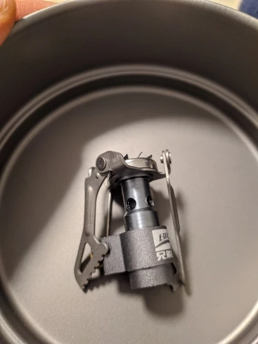 Очень тонкий и легкий. Баллон входит внутрь горшка. Приехал очень быстро