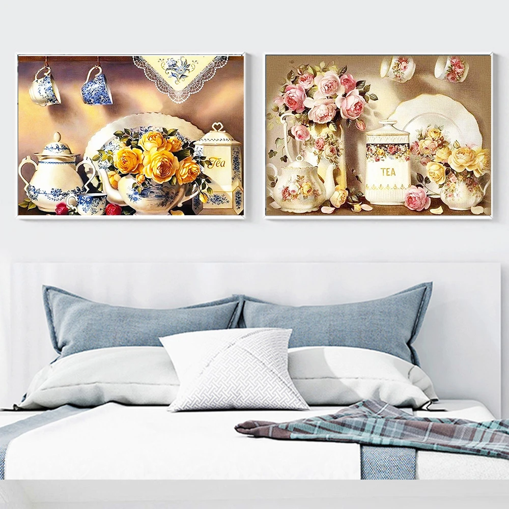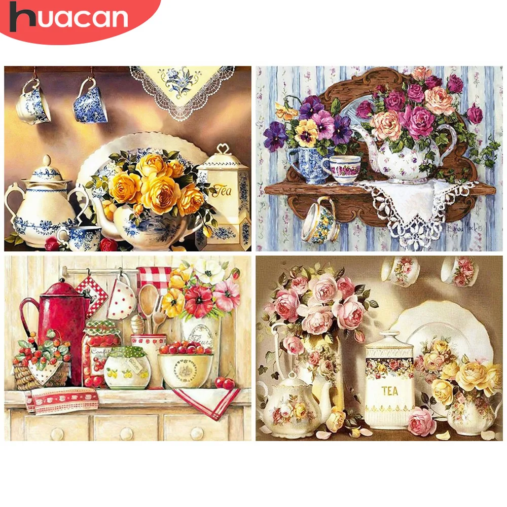 HUACAN 5D Алмазная вышивка кухню Полные комплекты Алмазная мозаика цветы распродажа наклейки на стену украшения для дома