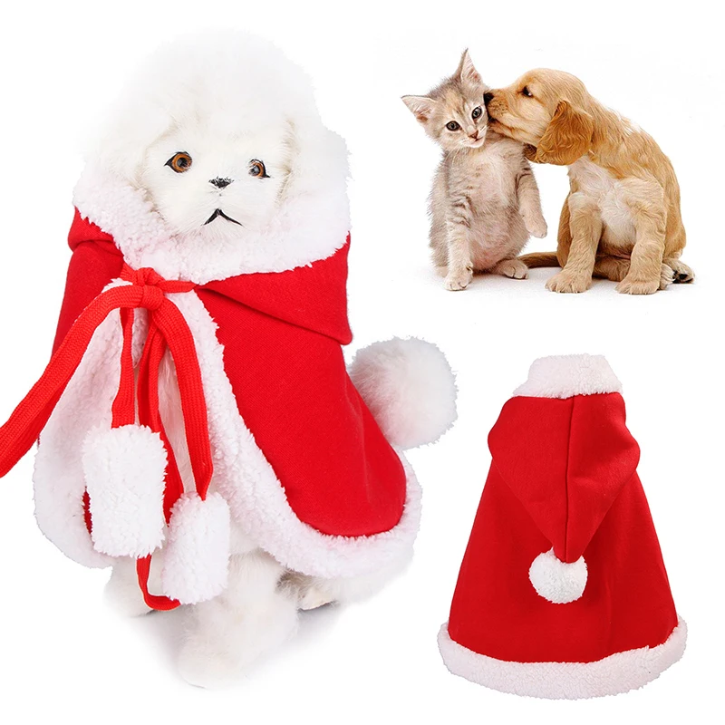 Рождественская накидка с капюшоном для домашних животных, милый Рождественский костюм для кошек и собак, зимняя Рождественская одежда, накидка с капюшоном для маленьких животных, модная одежда для собаки
