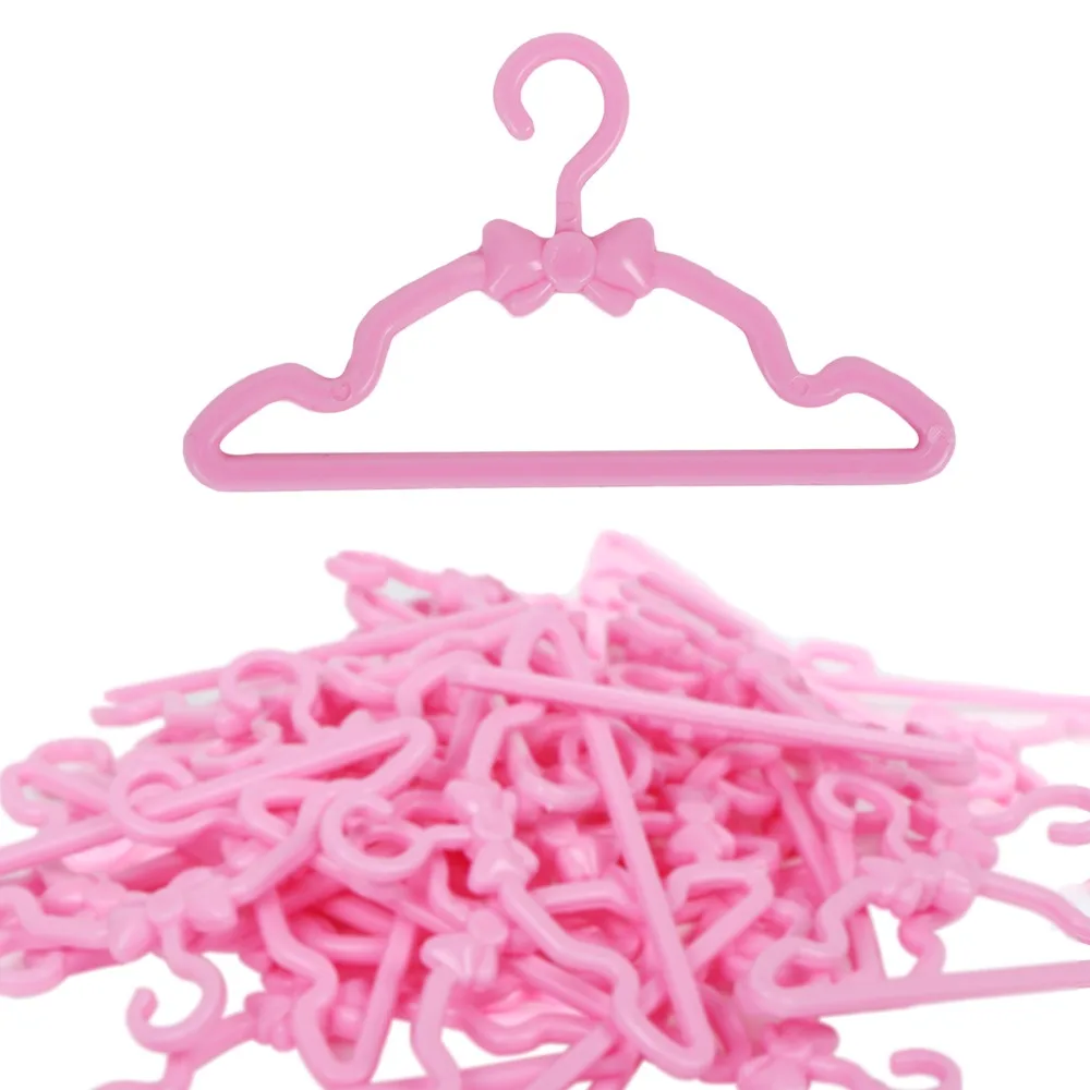 Мини-вешалки с розовым бантом 20 шт.лот, платяной шкаф, милый держатель, аксессуары, одежда для кукольного домика Барби, игрушка сделай сам