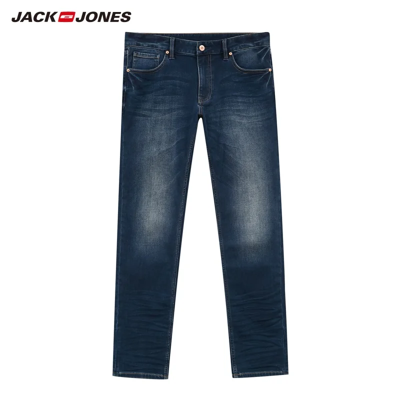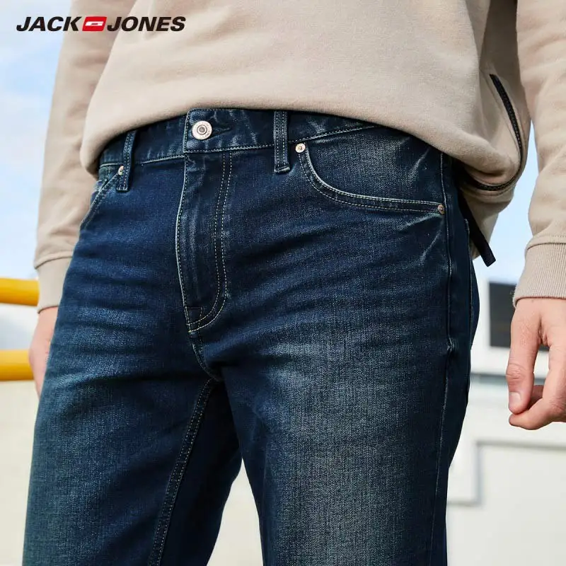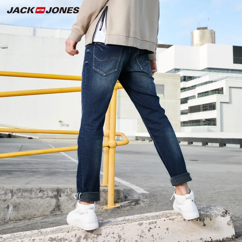 Мужские хлопковые повседневные джинсовые брюки JackJones, тонкие эластичные джинсы, базовые 219332599