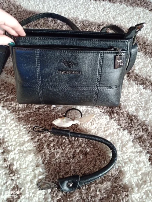 Заказ пришёл очень быстро. Сумка хорошая. Много карманов и отделений. Регулируется большой ремень и есть маленькая ручка сумки. Продавец положил резиночку для волос в подарок.