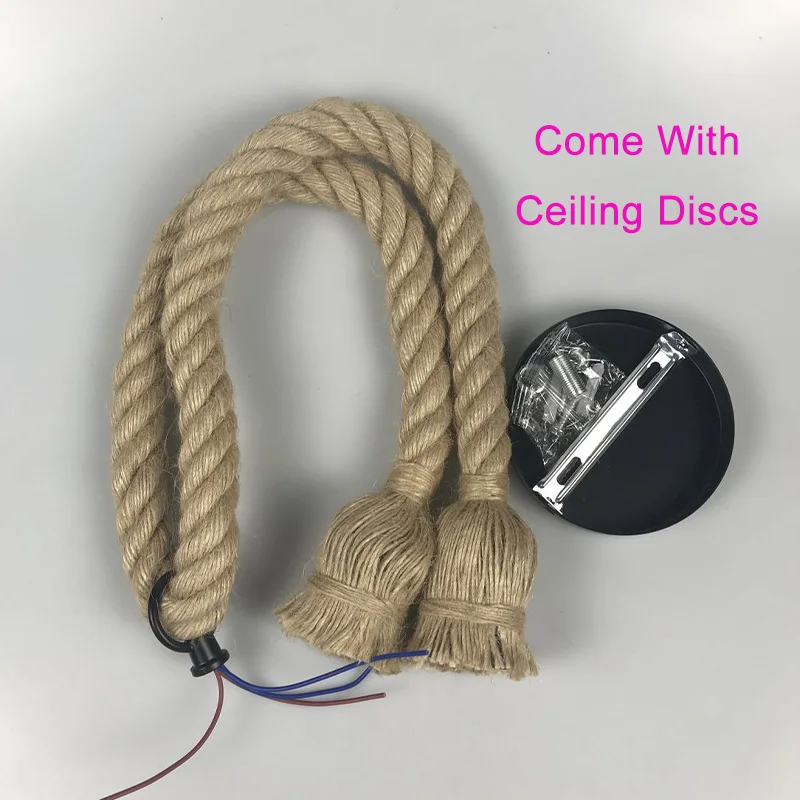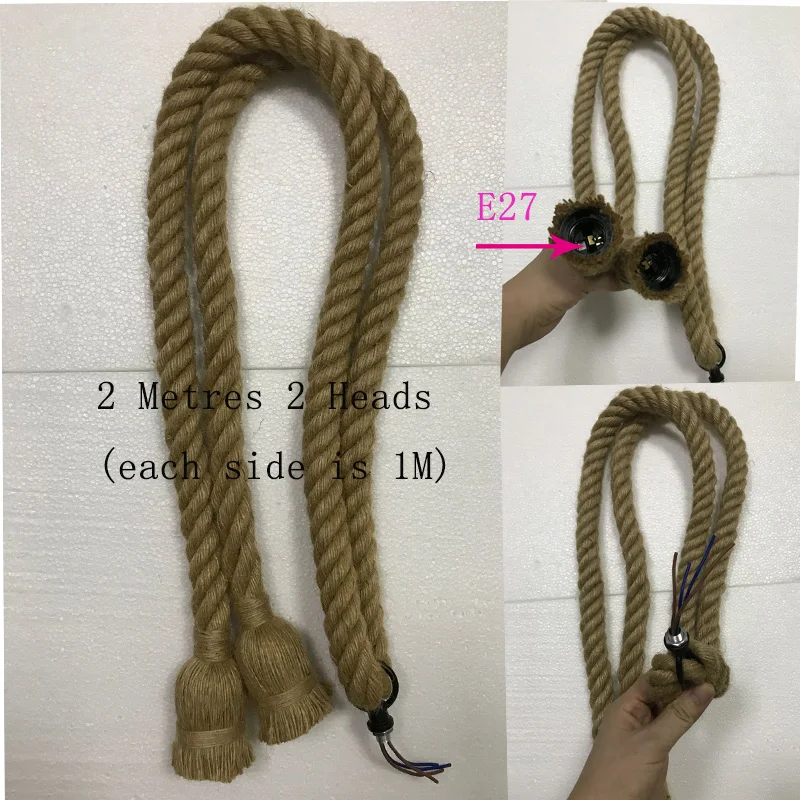 Винтажный подвесной светильник из пеньковой веревки s в стиле ретро Лофт промышленный подвесной светильник для гостиной кухни домашние светильники Декоративное освещениеПримечание:1 м 2 головки: общая длина 1 метр (каждая сторона по 0,5 м)2 м 2 головки: общая длина 2 метра (каждая сторона по 1 м)Поставляется с потолочными дискамиБез лампочекПрименение: гостиная, спальня, столовая, бар, кафе, магазин тканей и т. д.