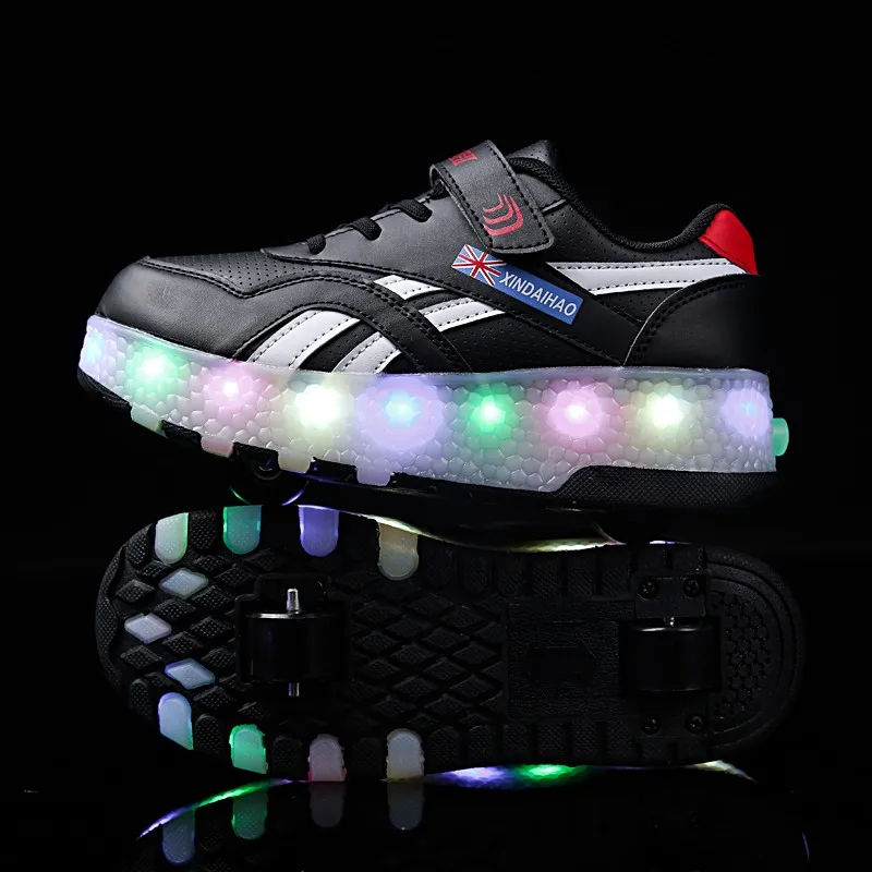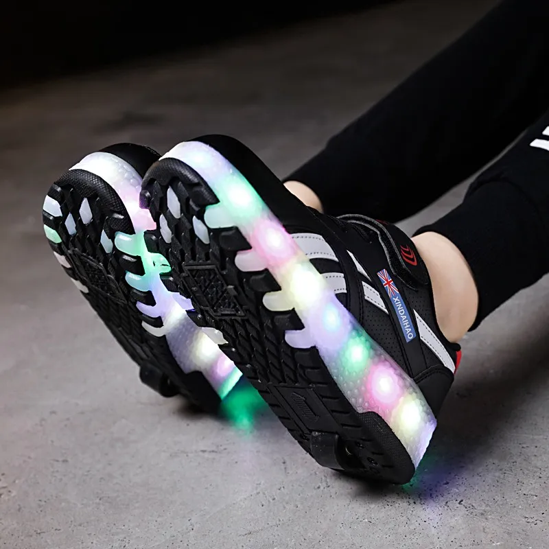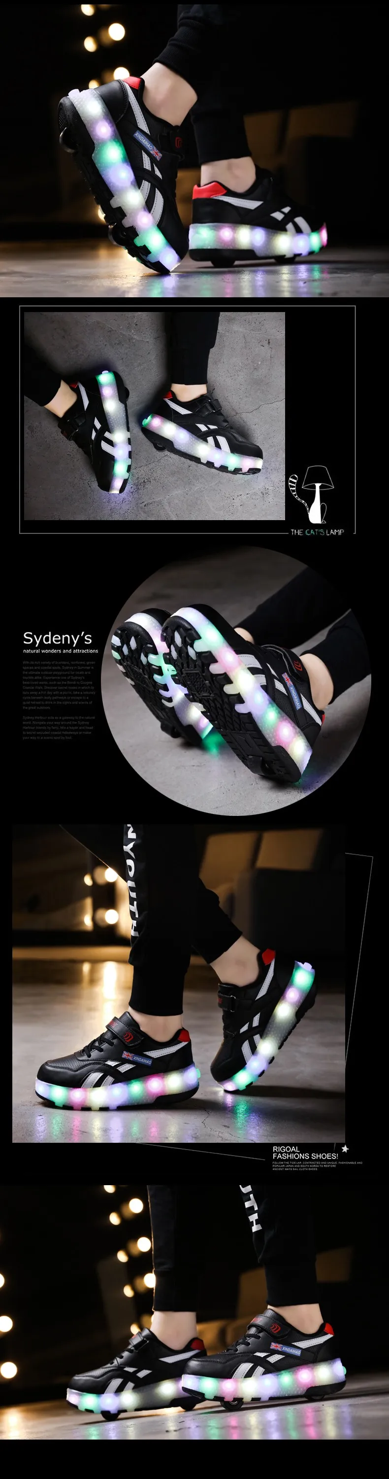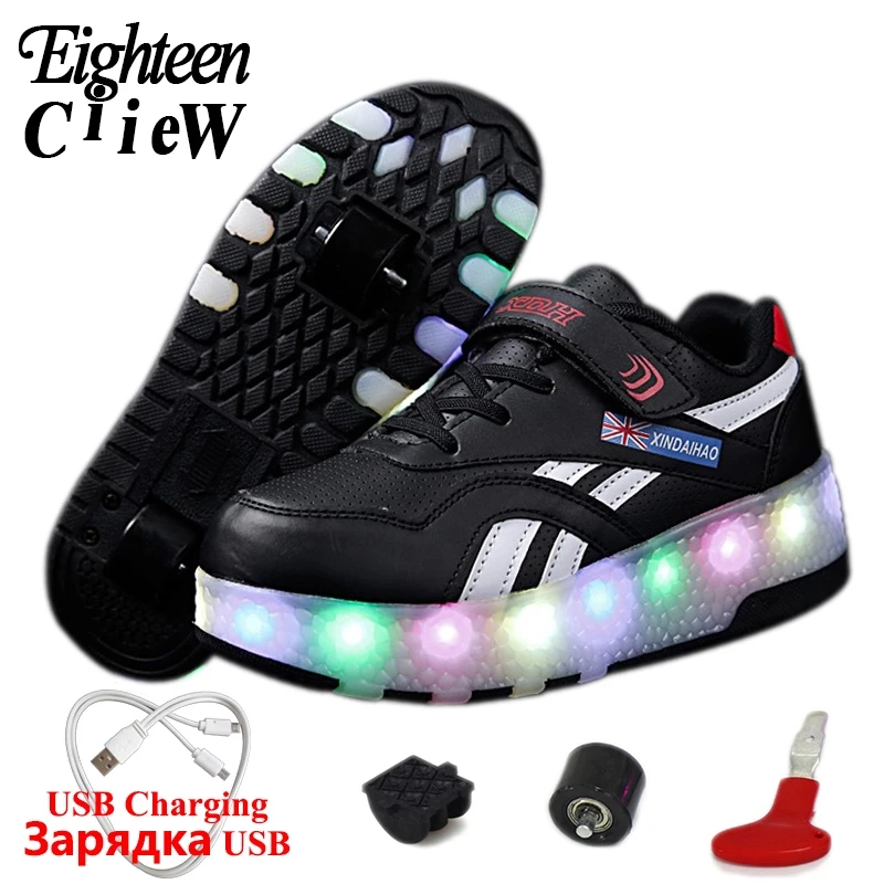Светящиеся кроссовки на колесах, размер 28-40, USB зарядка, светящиеся кроссовки на колесах для мальчиков, обувь со светодиодами и роликами, Детская светодиодная обувь