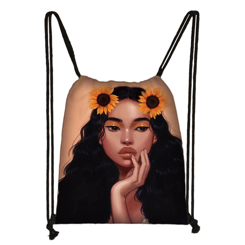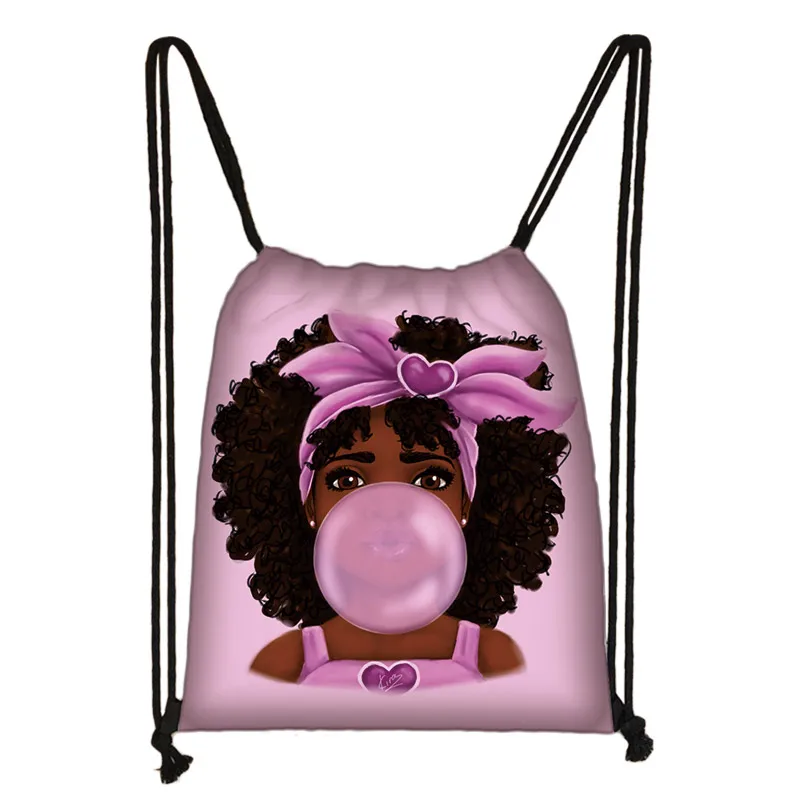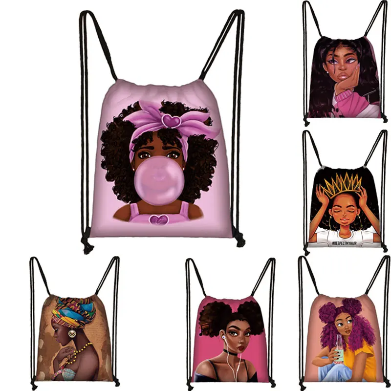 Черная женская сумка на шнурке с рисунком из мультфильма «афро»; Женская сумка для хранения в африканском стиле; Модный рюкзак для девочек; Дорожные сумки; Сумка