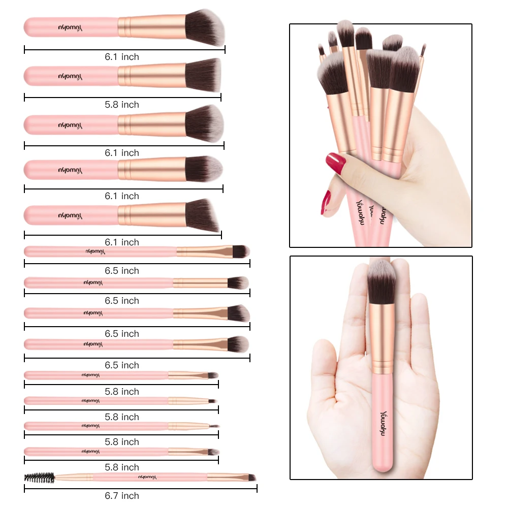 Набор кистей для макияжа, мягкий ворс, 14 шт., порошковые тени для век