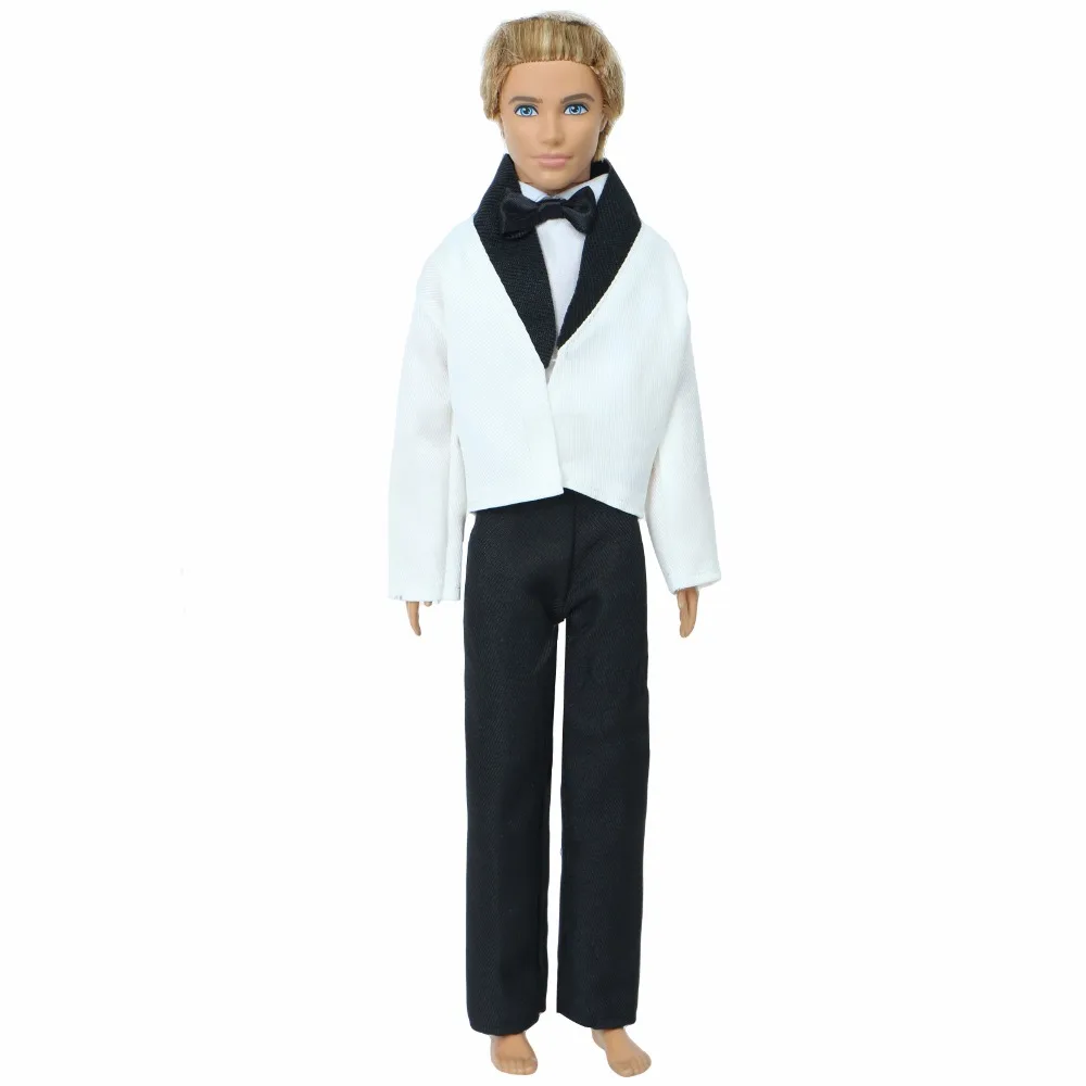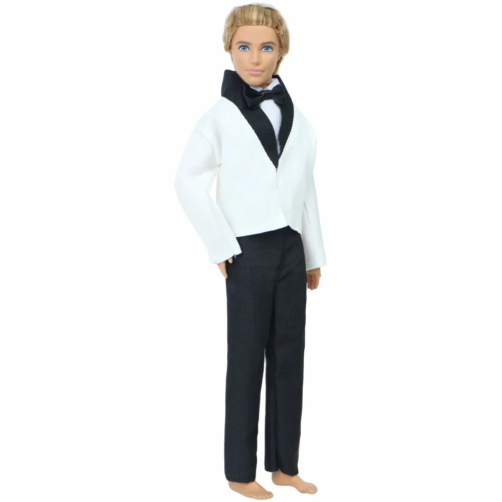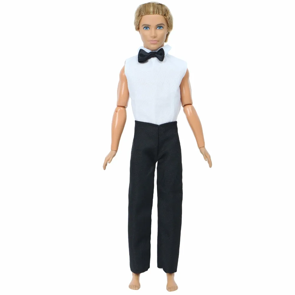 Мужской костюм с жилетом и брюками, официальный белый костюм с бантом, смокинг для свадебной вечеринки, аксессуары, одежда для куклы Барби, Кен, 1 комплект