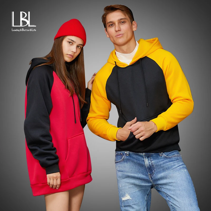 Толстовки для пар Толстовка 2019 Лоскутная хип-хоп толстовка с капюшоном Осенняя приталенная повседневная мужская толстовка женская теплая флисовая толстовка
