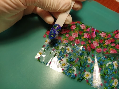 1. Подготовьте ногтевое ложе, отодвигая кутикулы назад и удаляя все масла.2. Нанесите Базовое покрытие и вылечите его сушилкой для ногтей.3. Нанесите лак для ногтей (темный цвет лучше), вылечите его сушилкой для ногтей.4. Нанесите клей-гель из фольги для ногтей и вылейте с помощью сушилки для ногтей, Вырежьте кусок фольги (достаточно большой для ногтей), нажмите на ногти. Различные цвета фольги могут быть смешаны на ногтях5. Снимите фольгу и рисунок фольги должен быть приклеен к ногтю.6. Заклейте его верхним слоем для защиты фольги.