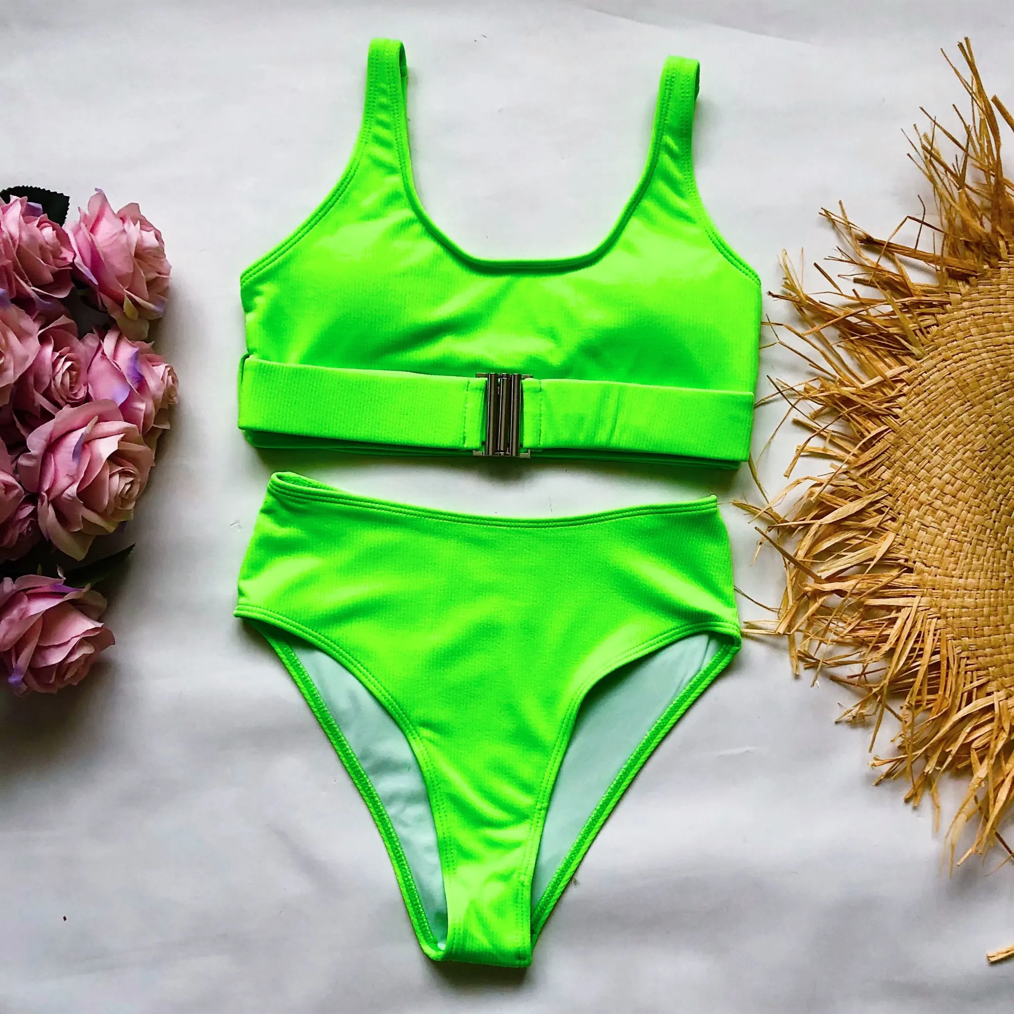 2022 новый сексуальный купальник бикини с высокой талией, женский купальник, комплект бикини пуш-ап без бретелек, купальный костюм с пряжкой, пляжная одежда, купальный костюм