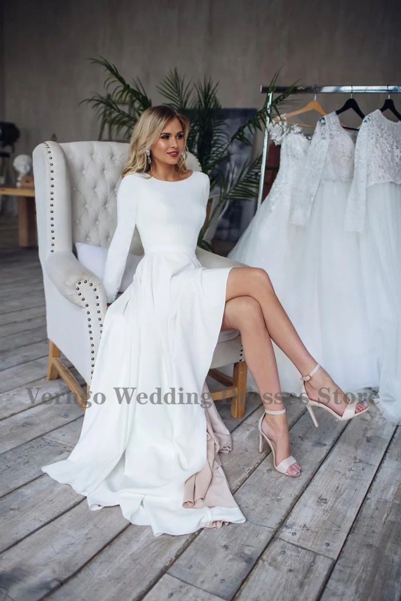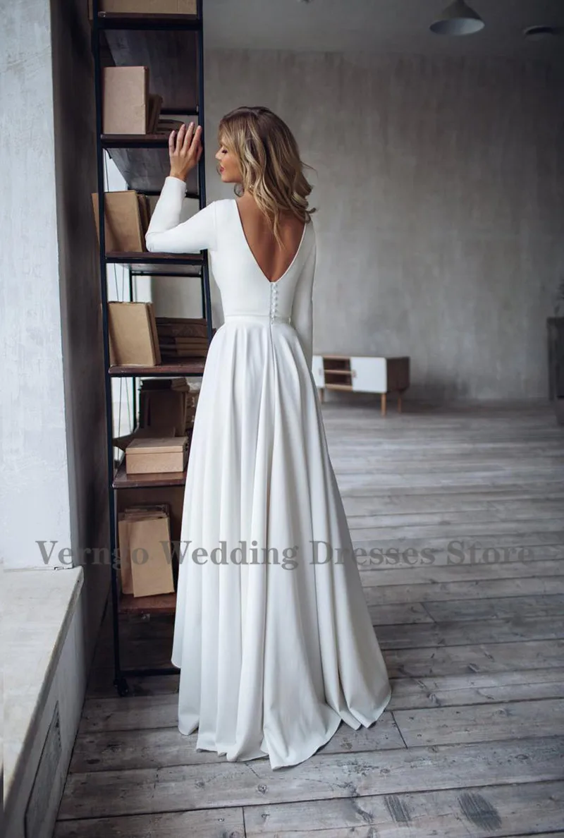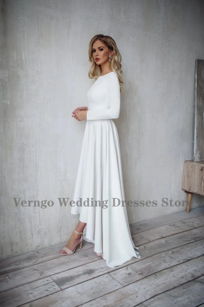 Винтажное атласное свадебное платье Verngo с длинным рукавом, 2022, короткие, спереди, длинные, сзади, бохо, пляжные свадебные платья, женское платье трапециевидной формы для вечерние