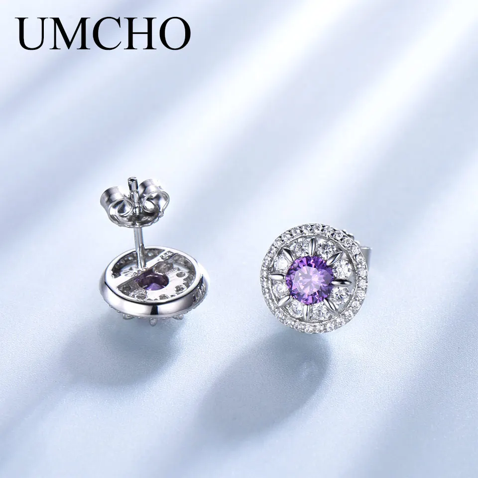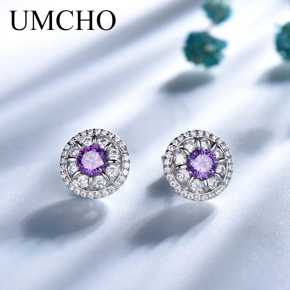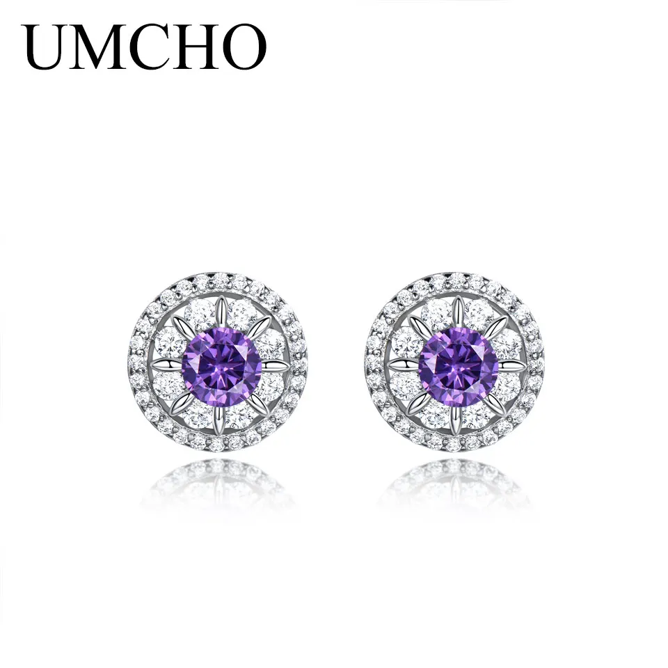 Женские серьги-клипсы UMCHO из стерлингового серебра 925 пробы с аметистом и драгоценными камнями, свадебные ювелирные украшения, подарок на день Святого Валентина