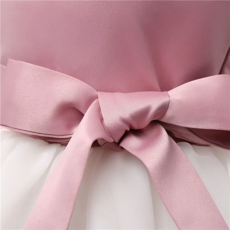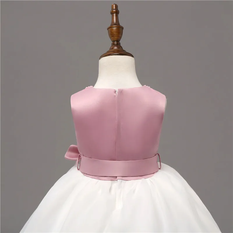Розовое белое кружевное детское бальное платье