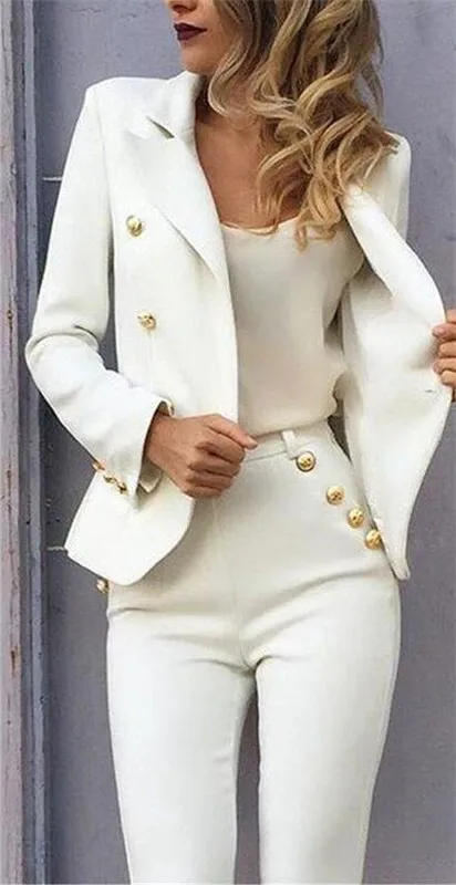 Модные белые женские деловые костюмы, пиджак + брюки, Деловые женские брючные костюмы, офисная униформа, стильные женские брючные брюки