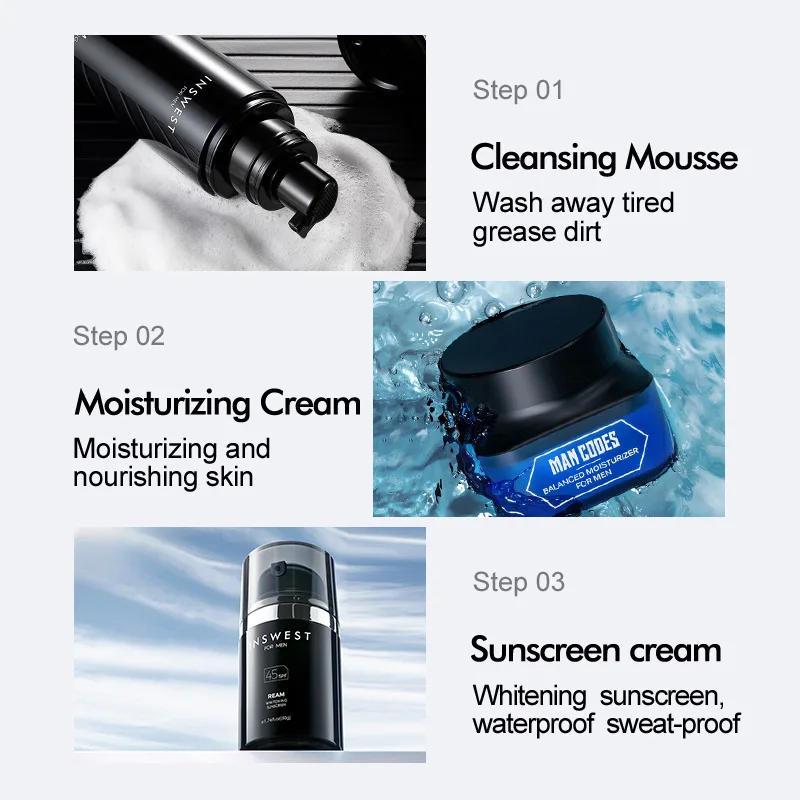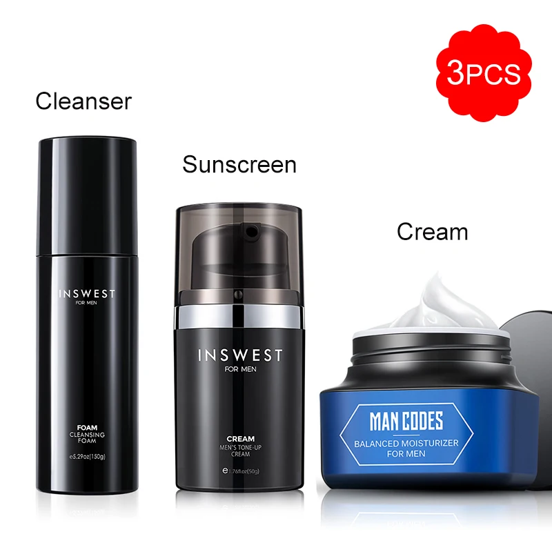 3 шт. мужской набор для ухода за кожей контроль масла мусс для умывания и отбеливающий солнцезащитный крем и антивозрастной увлажняющий крем для лица Уход за лицом 250 г