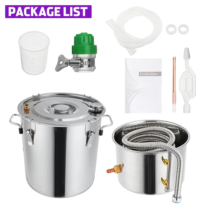 Примечания:1. Пожалуйста, очистите и высушите дистиллятор после использования.2. (не включая) вам понадобится: дрожжи, вода, источник тепла (я предлагаю использовать газовую плиту)Посылка:1 х кастрюля для ферментера1 х охлаждающий горшок1 x чашка1 х водяной шланг1 x медная колонна1 x значение выхлопа1 Инструкция1 x подключение2 х уплотнительное кольцо