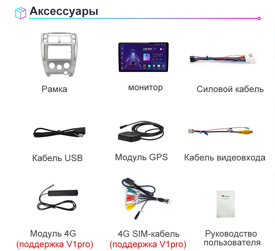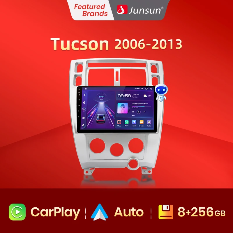 Junsun V1 AI Голосовое CarPlay Автомагнитола Магнитола Мультимедиа автомобиля для хендай туксон hyundai tucson 2006-2013 2008 Android auto 4G GPS трекер навигатор 2 DIN 2 дин андройд Аудио Автомагнитолы