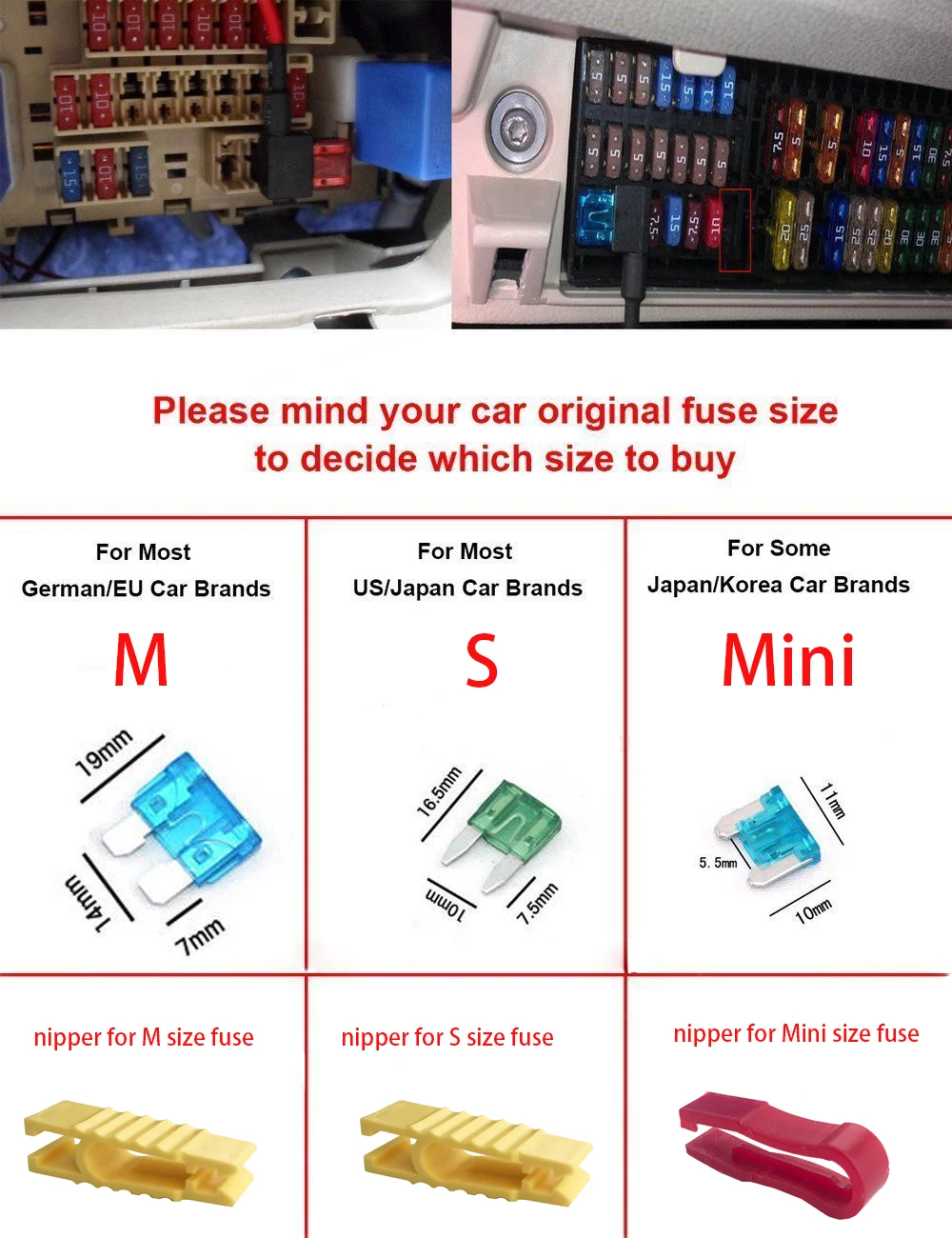 Покупал для подключения регистратора в Sorento XM. Размер MINI (в вариантах) подошёл идеально под штатное гнездо предохранителя. Сделано добротно. Покупать можно смело.