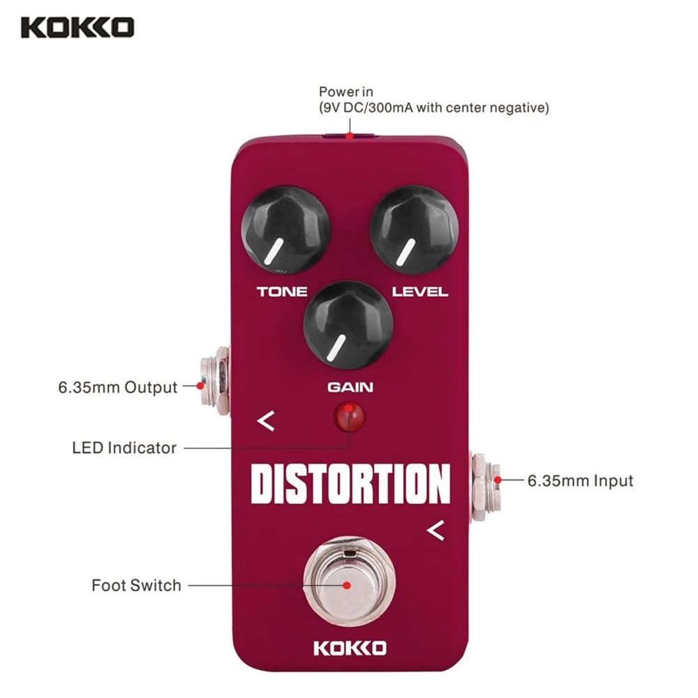 Портативная гитарная педаль с микро-искажением KOKKO FDS2, педаль с эффектами из алюминиевого сплава, запасные части и аксессуары для гитары True Bypass