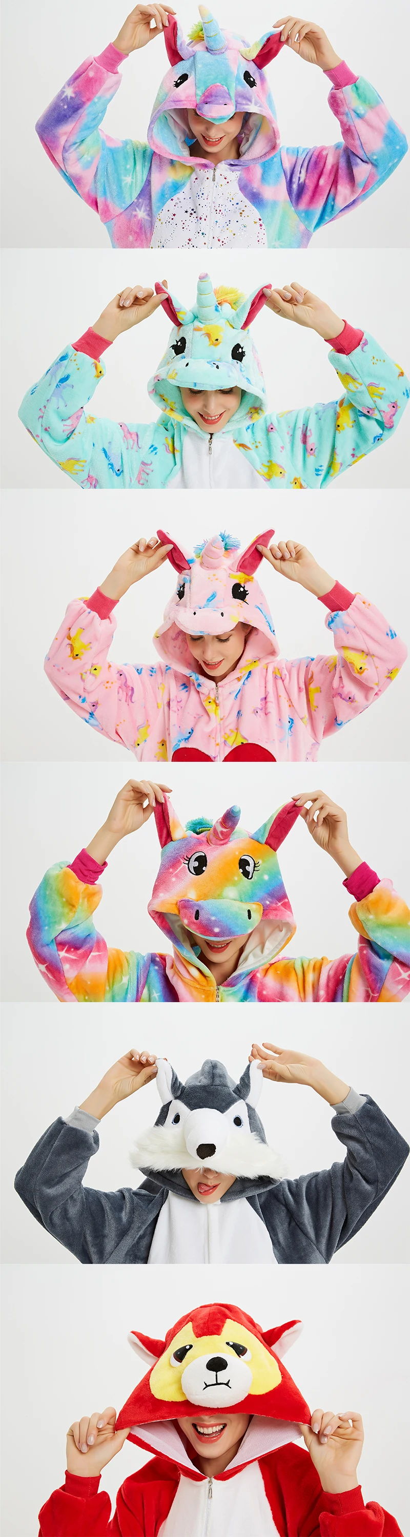 Единорог комбинезоны для взрослых пижамы животных Женские костюмы п...