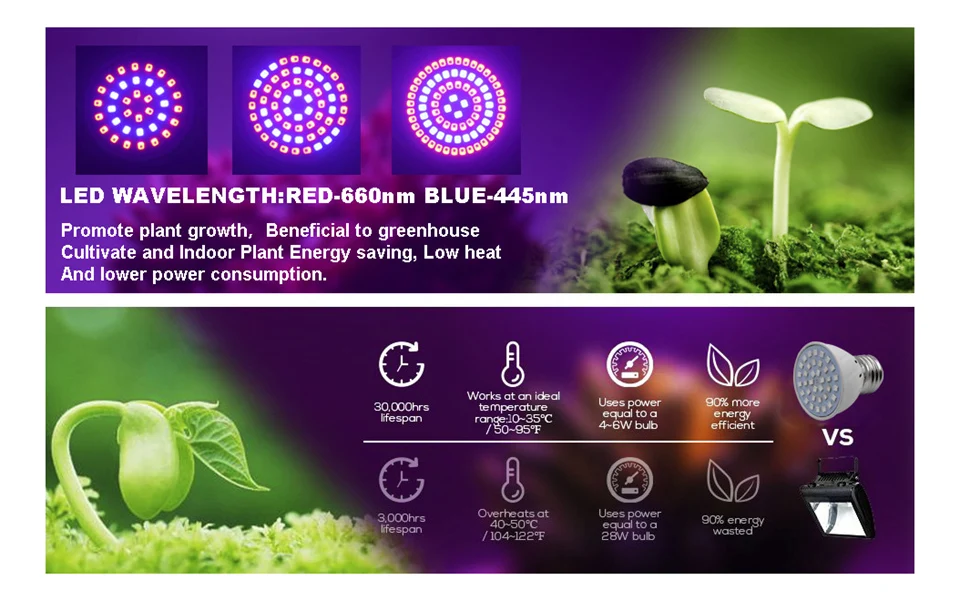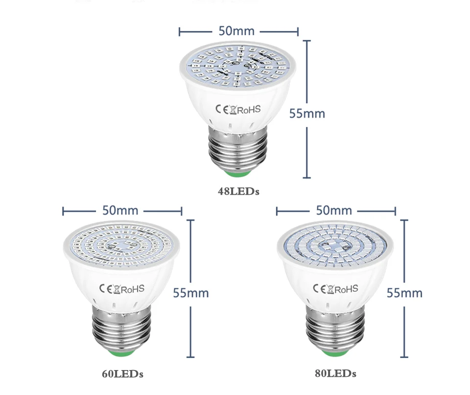 Светодиодные лампы полного спектра для выращивания растений, Е27, 220 В