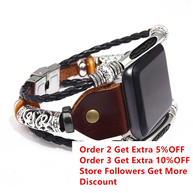 Винтажный кожаный браслет с бусинами Kirykle для Apple Watch серии ...