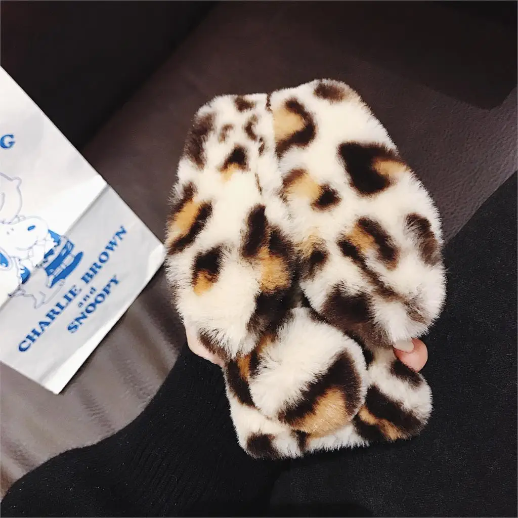 Модный теплый чехол с милым кроликом и пушистым леопардовым принтом...