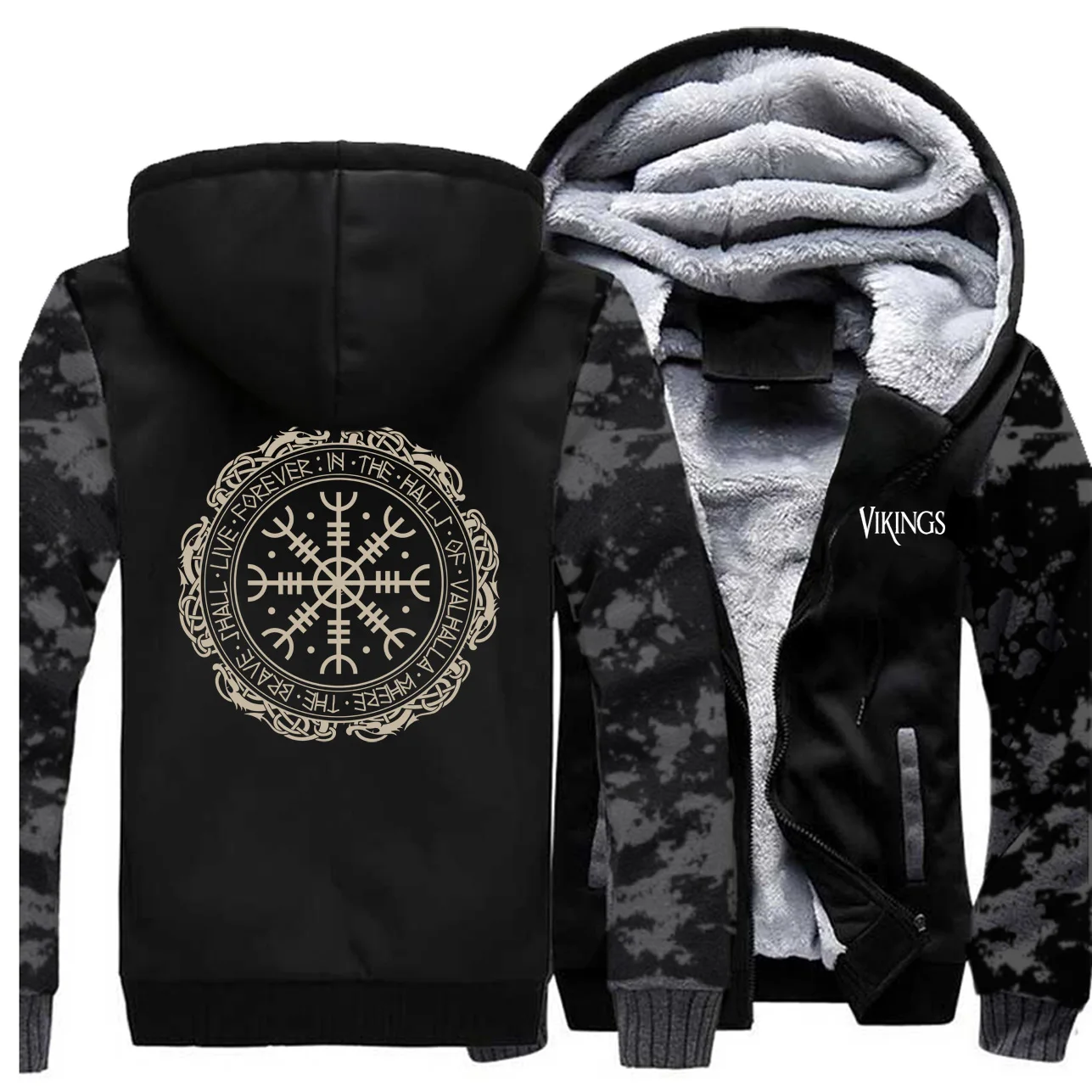 Мужская толстовка с капюшоном, с принтом викингов, в стиле хип-хоп, с камуфляжным рукавом, повседневная, зима 2021