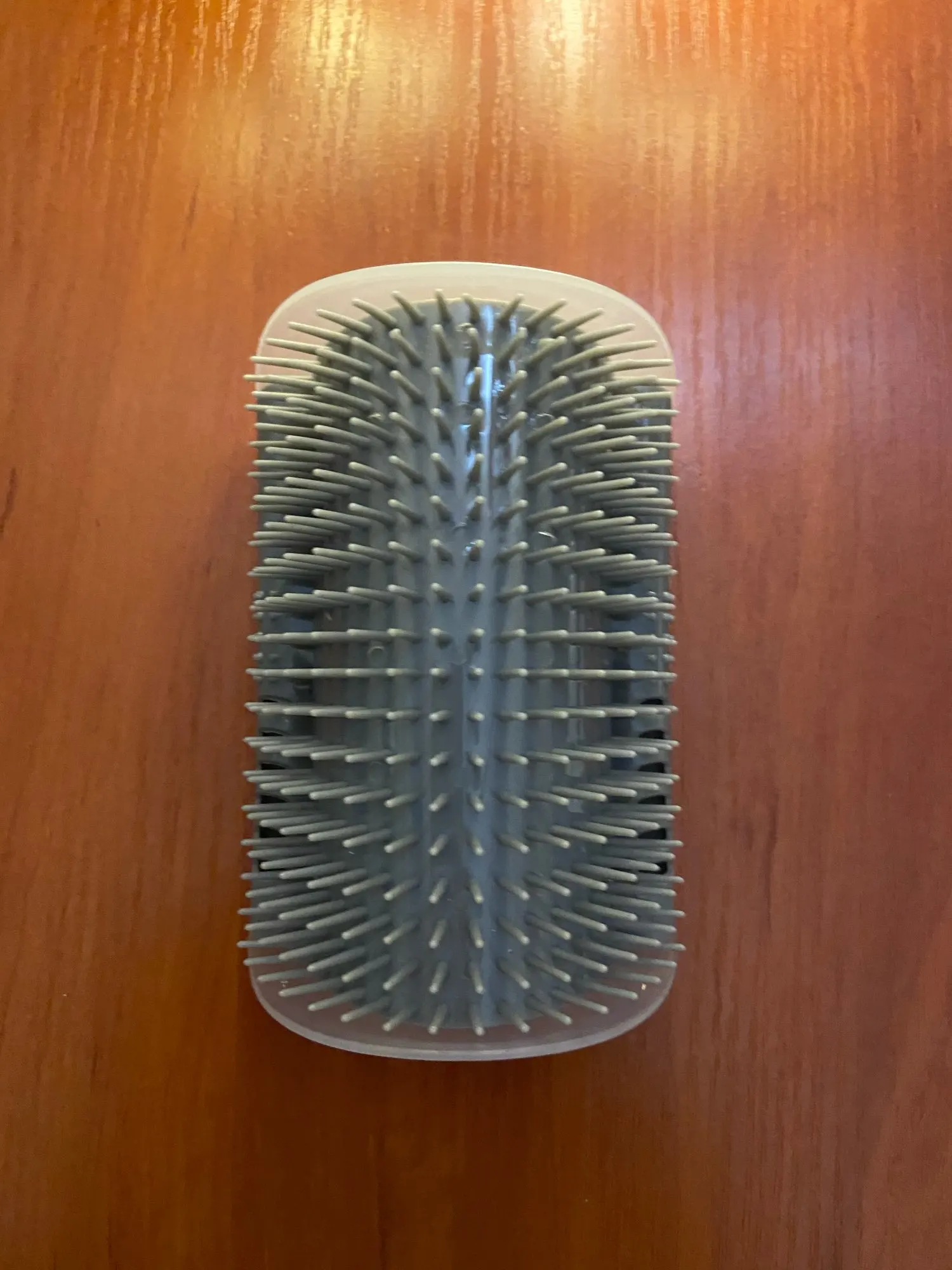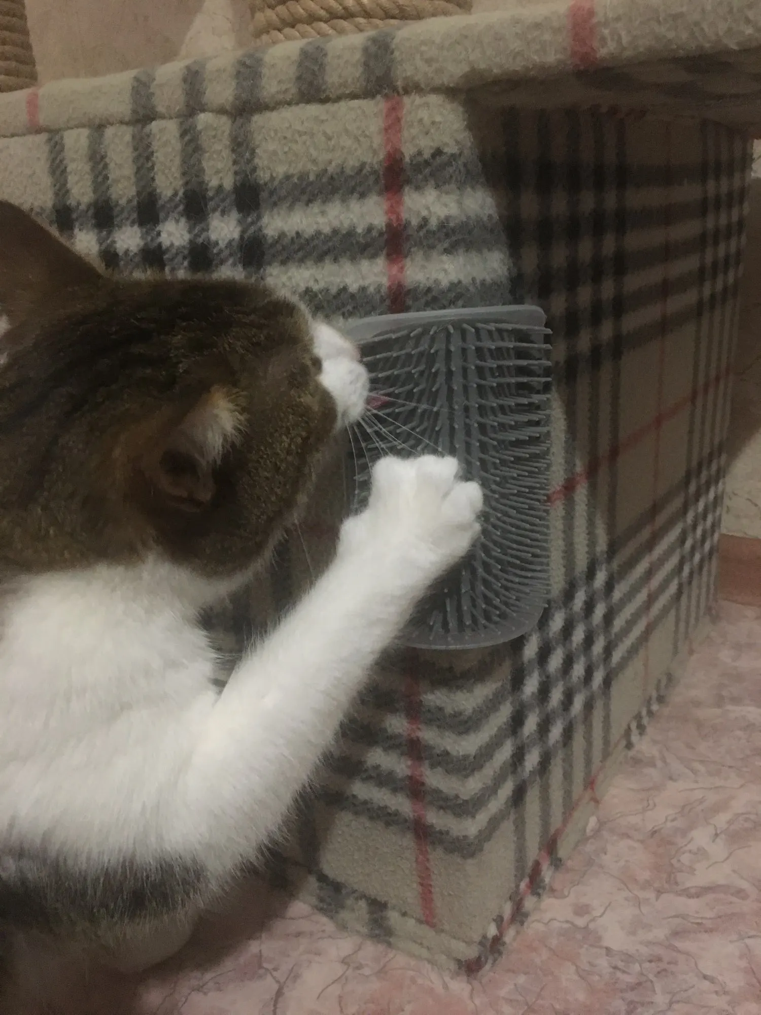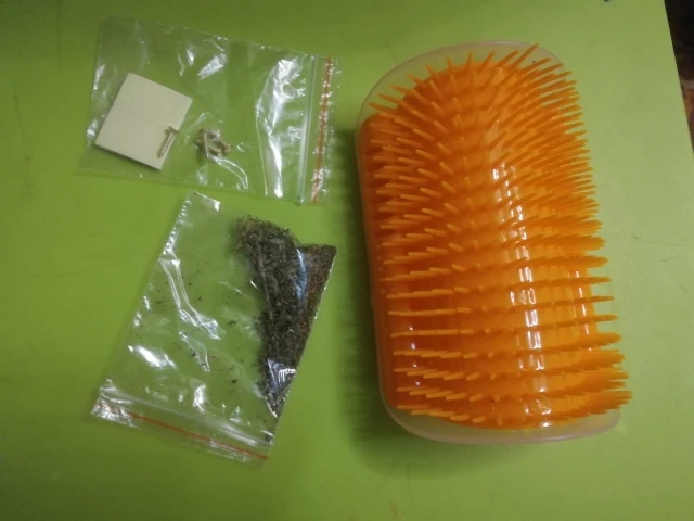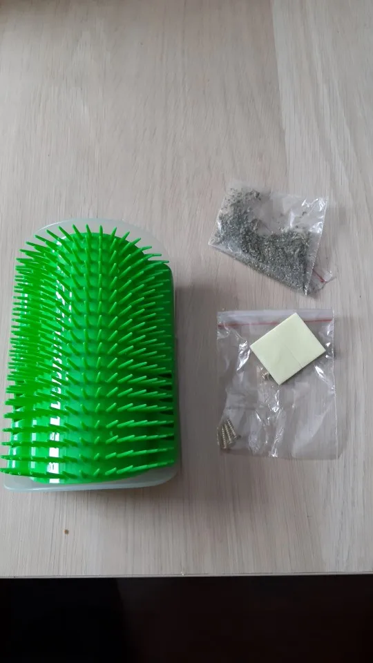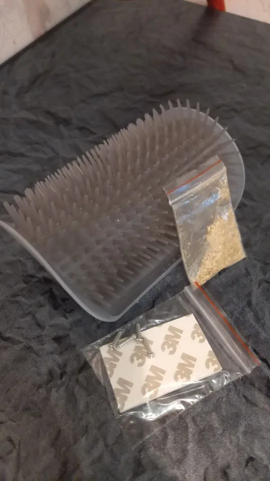 Отримала замовлення за 24 дні разом з іншими моїми посилками на Новій пошті.В наборі прийшов пакетик м'яти,і шурупчики для того,щоб прикріпити цю щітку,і ще щось на клейкій основі.Моя кішечка більше грається зі щіткою,кусає її,але можливо тому,що ще маленька і не розуміє.....Але в загальному,все ок.