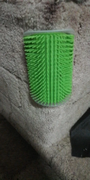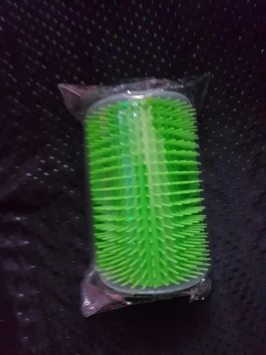 кошка очень довольна. продавец послал еще пакетик с какойто травкой которую нужно всыпать в эту счетку. сзади щетка такой плпстиковый контейнер. очень удобно. кошка просто сошла с ума. чесалась чесалась потом успокоилась и легла спать.