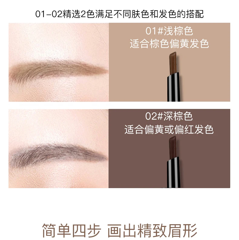 KAN 2 цвета, двойной карандаш для бровей, водостойкая, долговечная, без цветения, вращающийся, треугольный карандаш для бровей