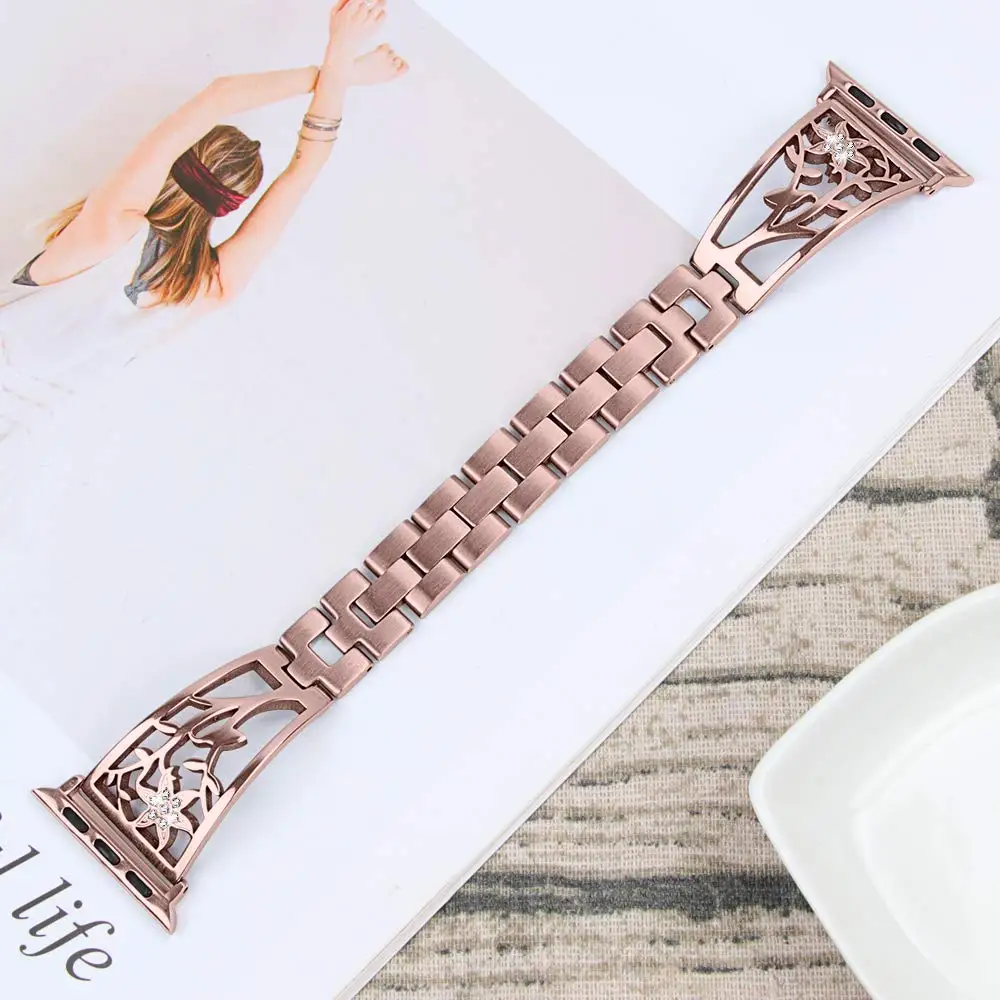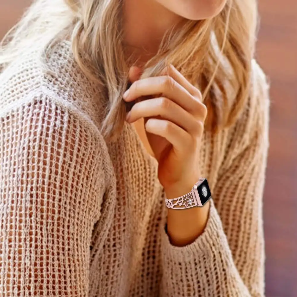 3. Элегантный тонкий ремешок в комплекте стразы. Просто достаточно шикарно, чтобы сделать его очень модным. Ваш браслет iwatch выглядит как ювелирное изделие. Хороший вариант носить apple watch с вашими платьями. Приносит вам много комплиментов