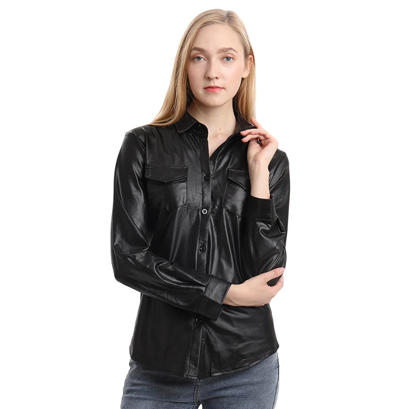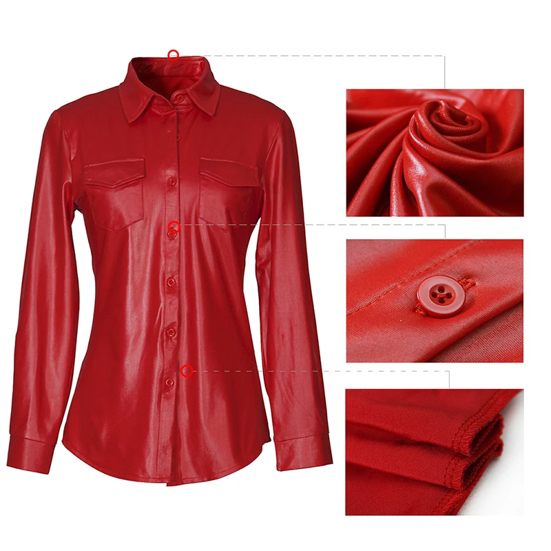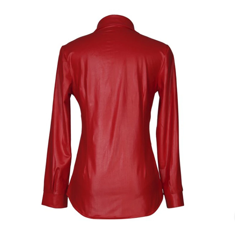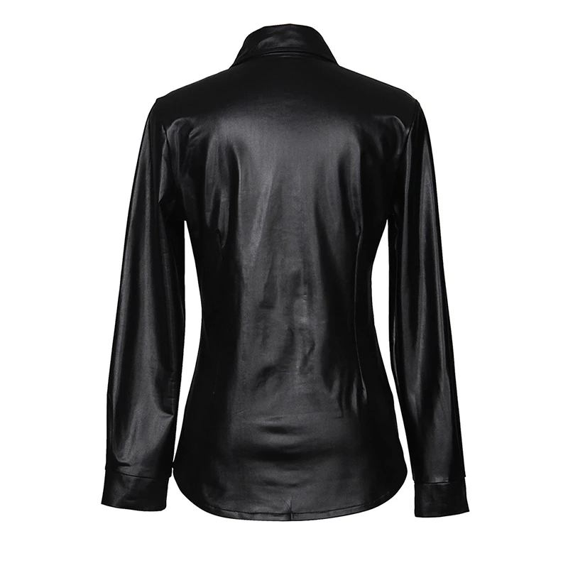 Блузка женская из искусственной кожи, пикантный Топ с длинным рукавом на пуговицах, уличная одежда, повседневная шикарная рубашка, lusas