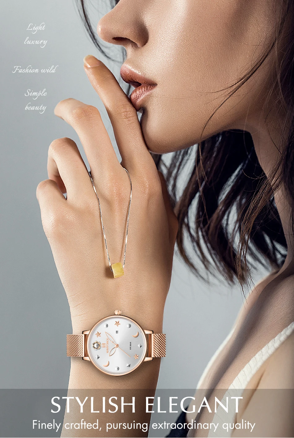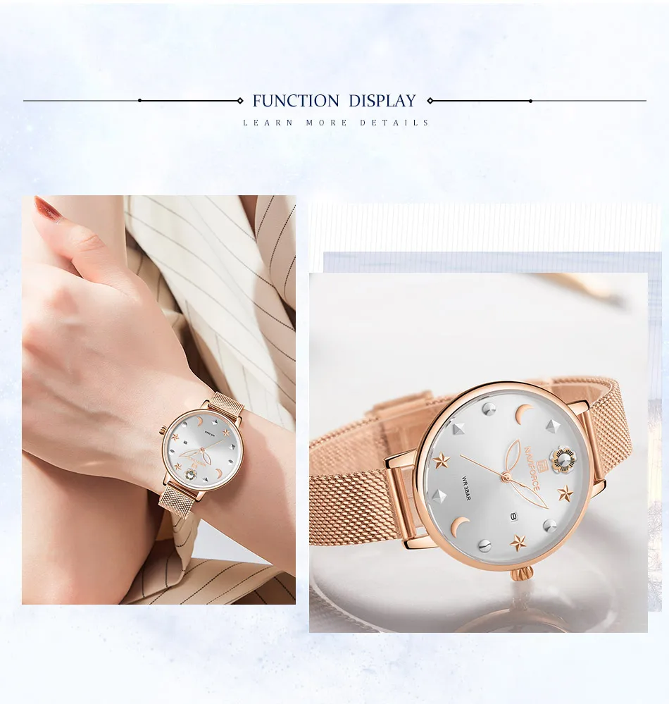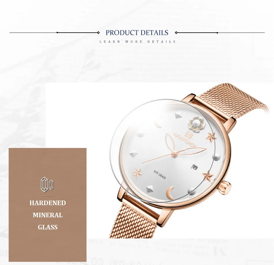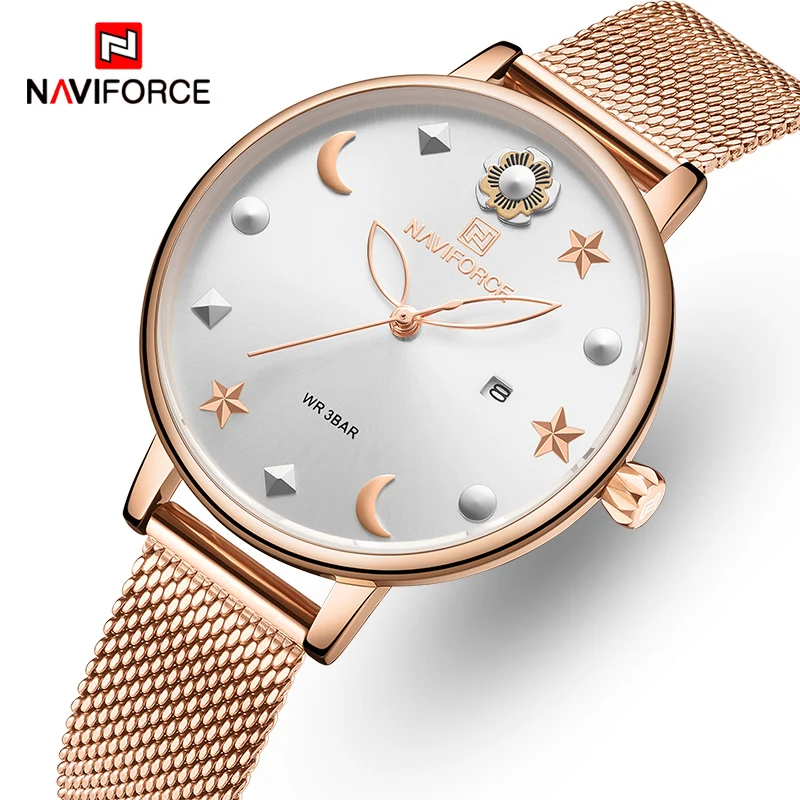 NAVIFORCE женские часы из розового золота, кварцевые женские часы из нержавеющей стали, водонепроницаемые женские наручные часы, женские часы