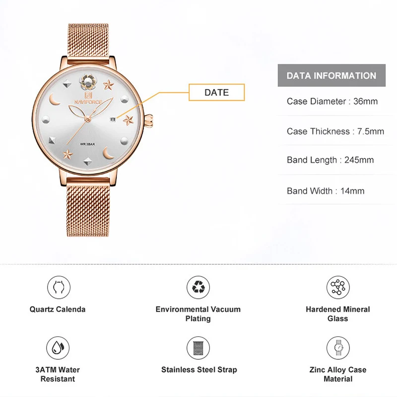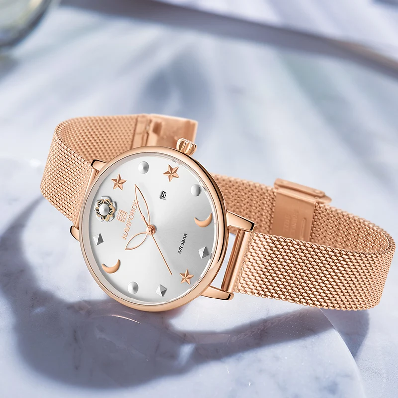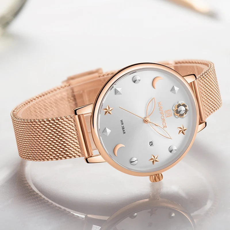 Артикул:Роскошные женские часы NAVIFORCE цвета розового золота