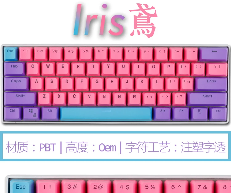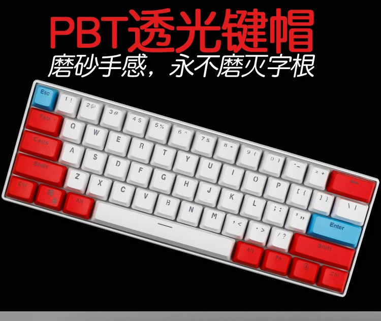 Колпачки для клавиш PBT матовые с подсветкой для раскладки механической клавиатуры ANSI 60% Gh60 RK61 ALT61 ANNE, 1 комплект