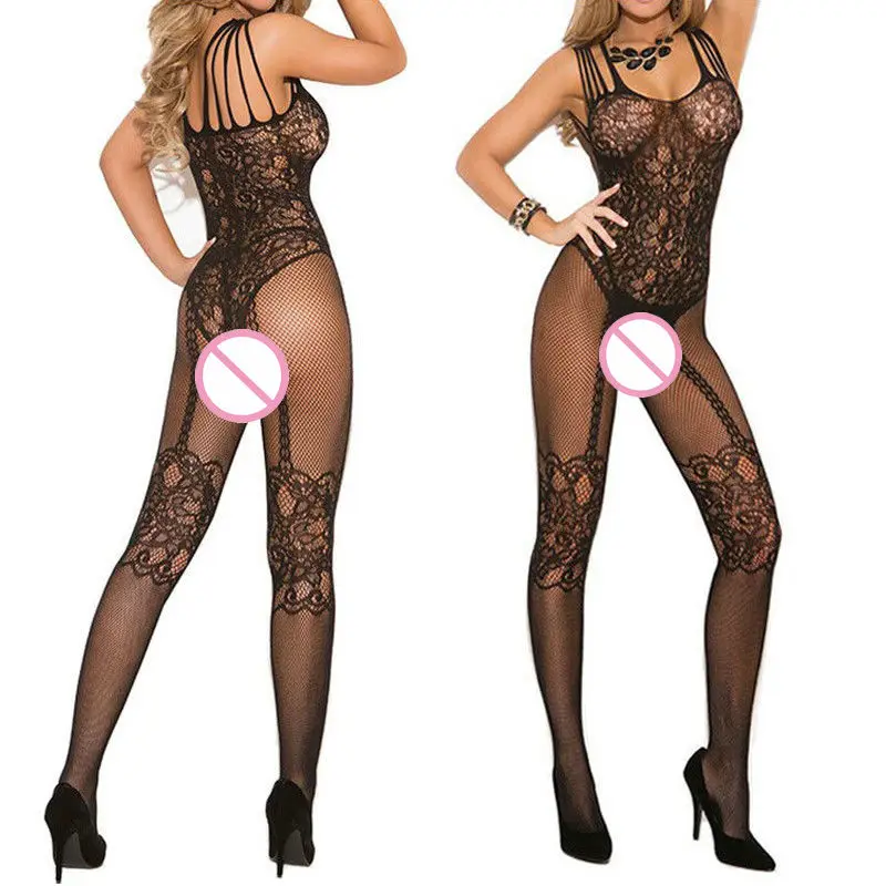 Черный Нижнее белье в сеточку, прозрачный сетчатый комбинезон сексуальный купальник Сексуальная Одежда с открытой промежностью, сетчатый цветок Новинка; Лидер продаж чулок на тело