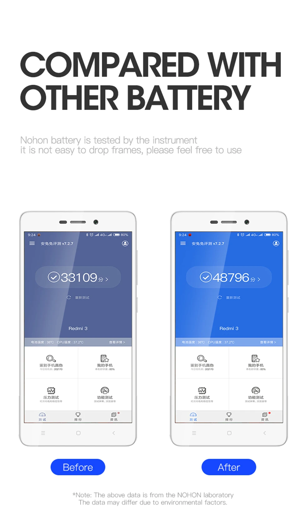 NOHON для Xiaomi Redmi Note 3, 2, 4, 4X 3S 3X Note3 Note4 Note2 бат...