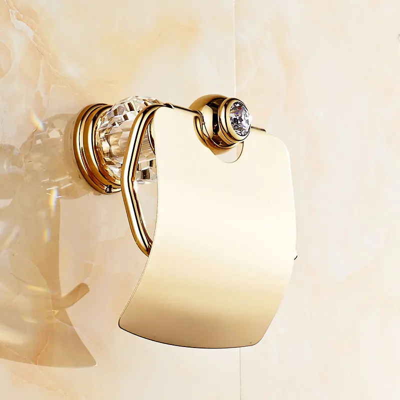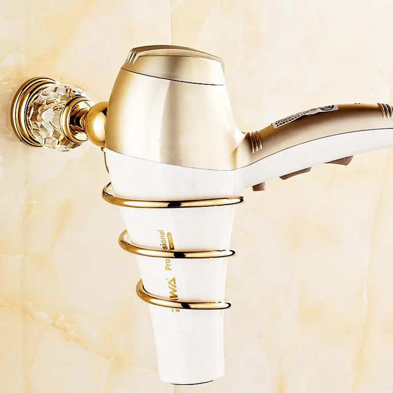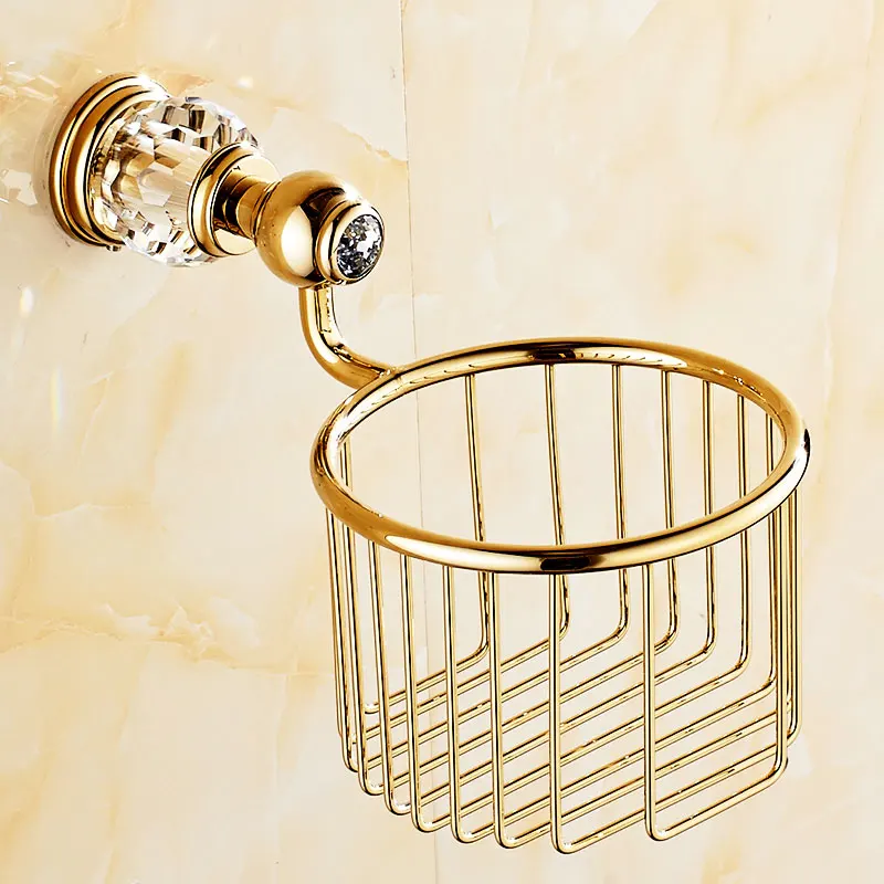 Роскошные золотые хрустальные латунные аксессуары для ванной комнаты, набор оборудования для ванной комнаты, Золотой держатель для мыла, полотенец, сушилка для волос, бумажная сетка 2