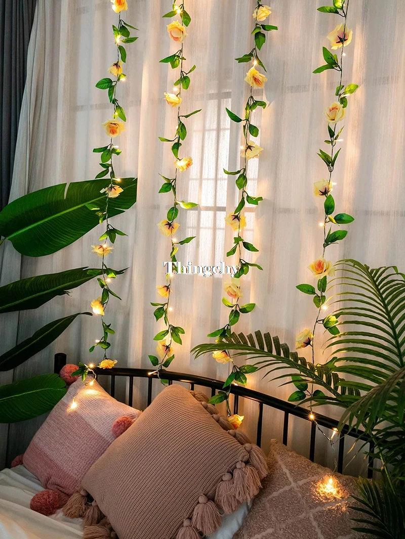 Декоративная гирлянда с розой, медный провод, СВЕТОДИОДНАЯ Гирлянда для рождества, свадьбы, украшения, вечеринки