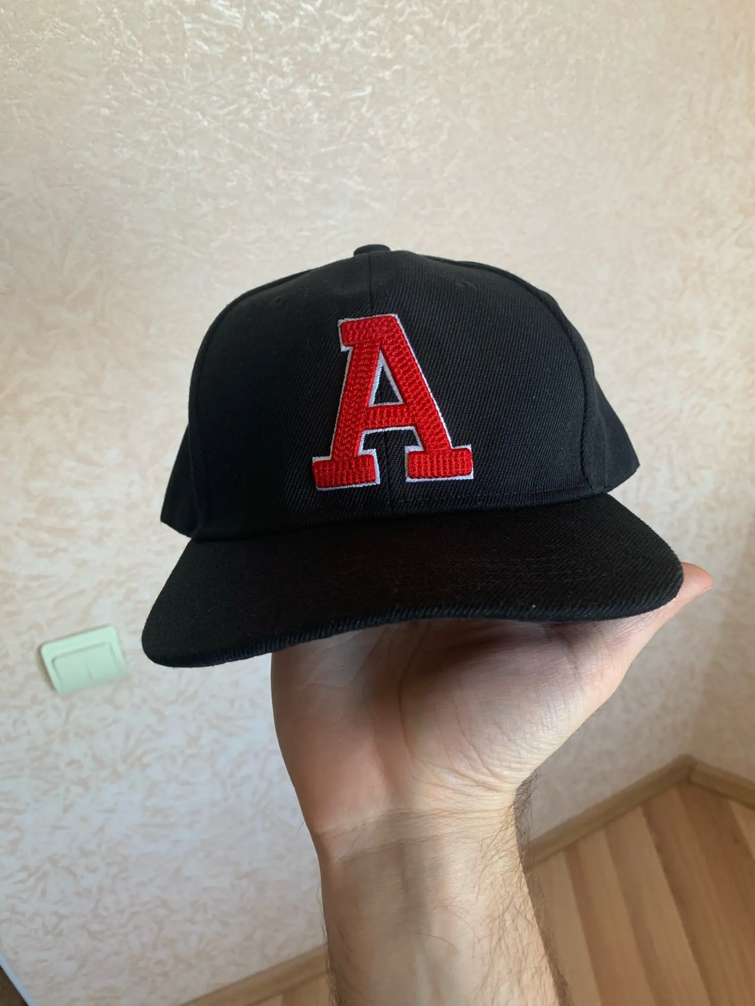 очень криво сшита кепка,буква "А" вышита не по центру