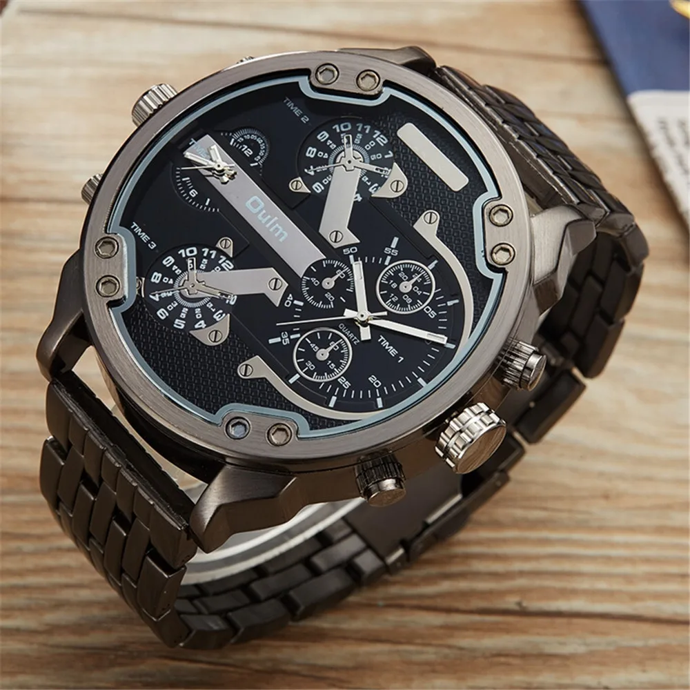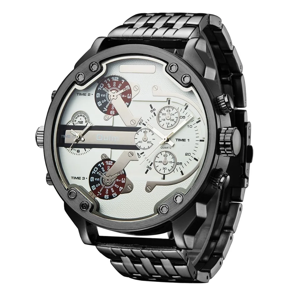 Большие мужские часы Oulm, роскошные брендовые уникальные дизайнерские кварцевые часы, мужские тяжелые наручные часы с браслетом из нержавеющей стали, мужские часы