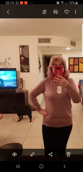 Джемпер очень мягкий, приятный к телу. На р.44 взяла L, подошёл идеально