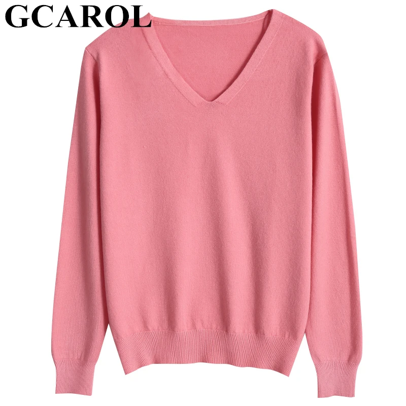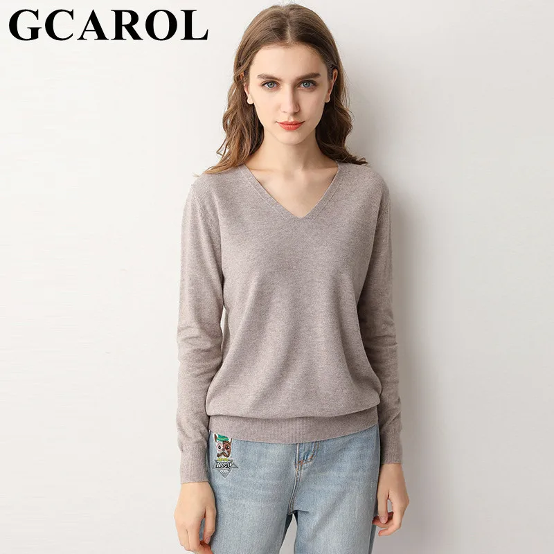 Женский стрейчевый джемпер GCAROL, вязаный свитер с круглым и V-образным вырезом, трикотажный пуловер в стиле минимализма с содержанием шерсти 30%, свитер для офиса размера 3XL
