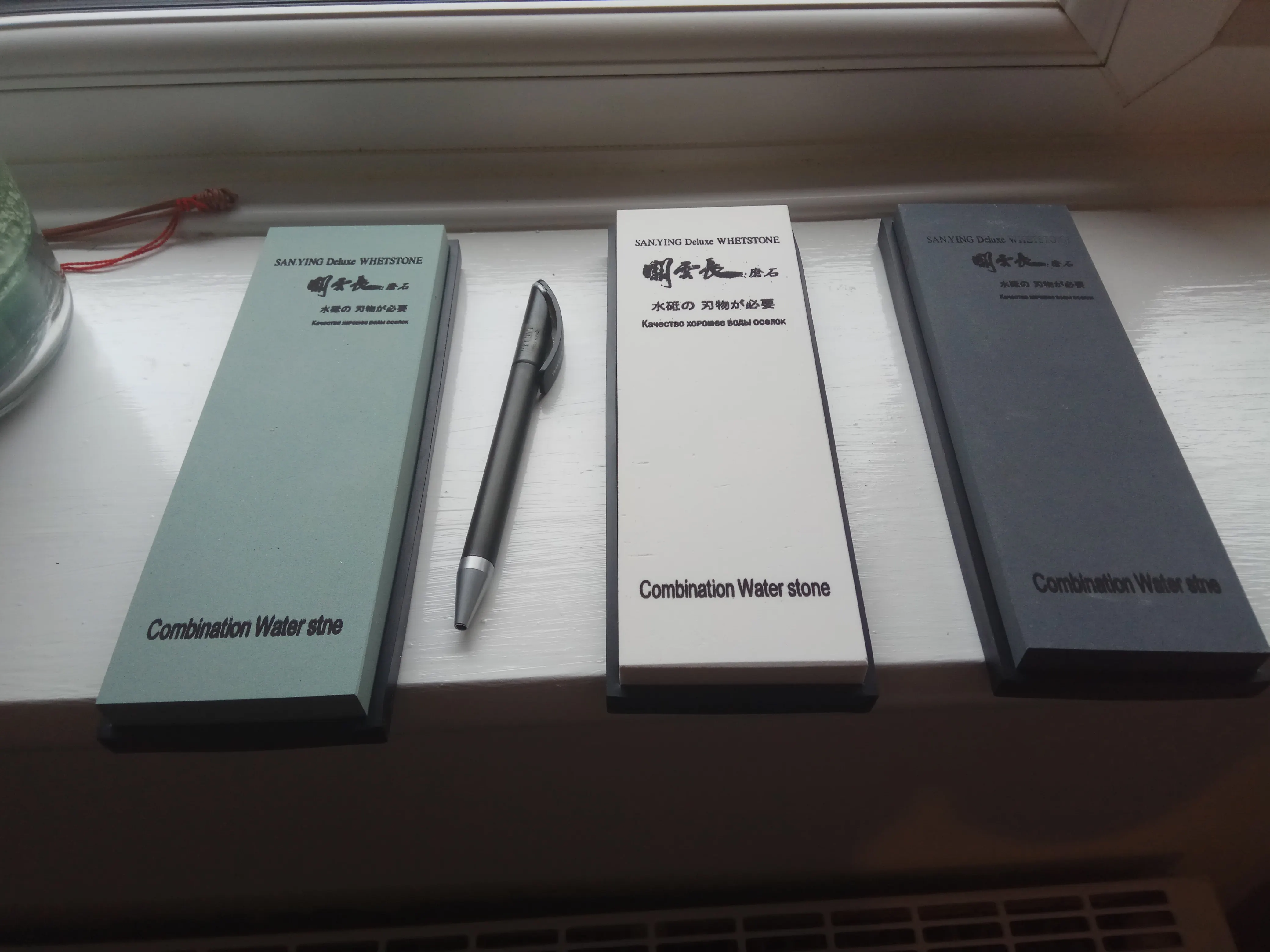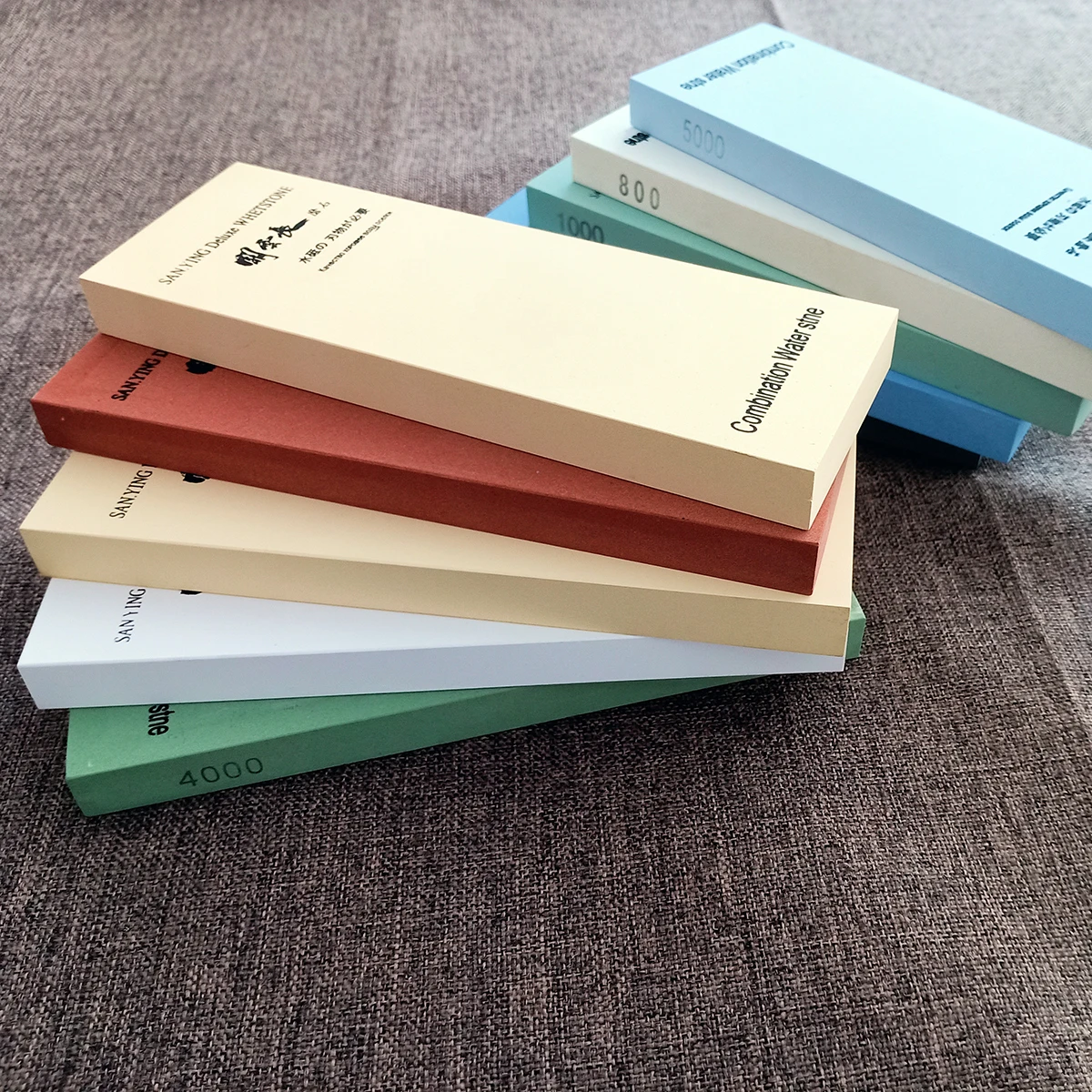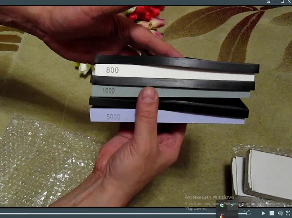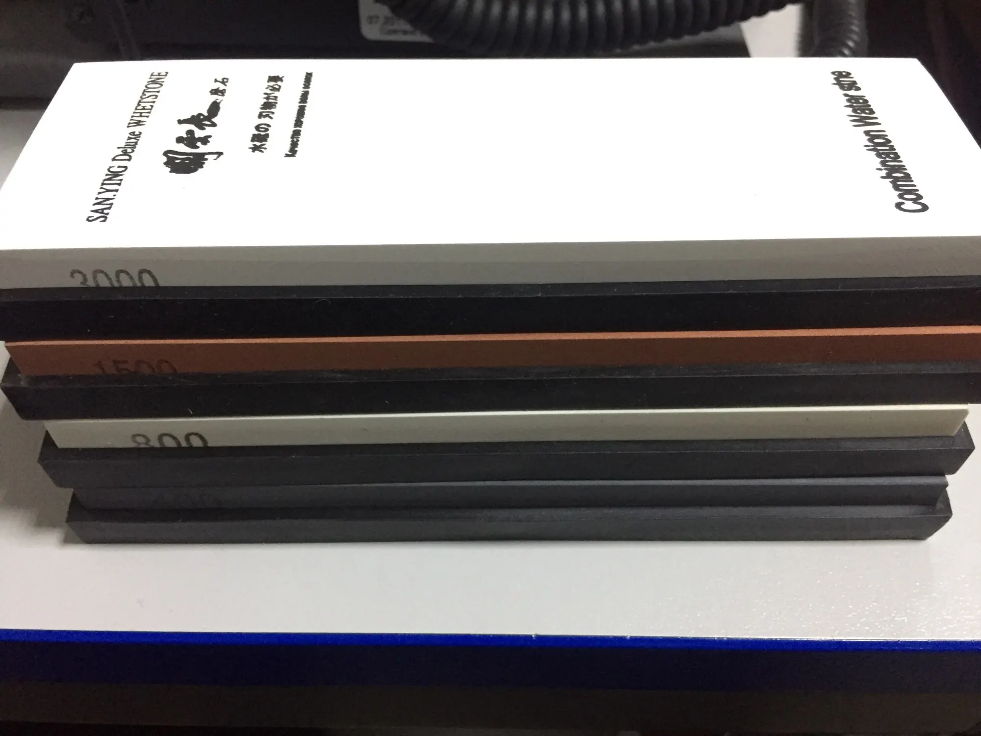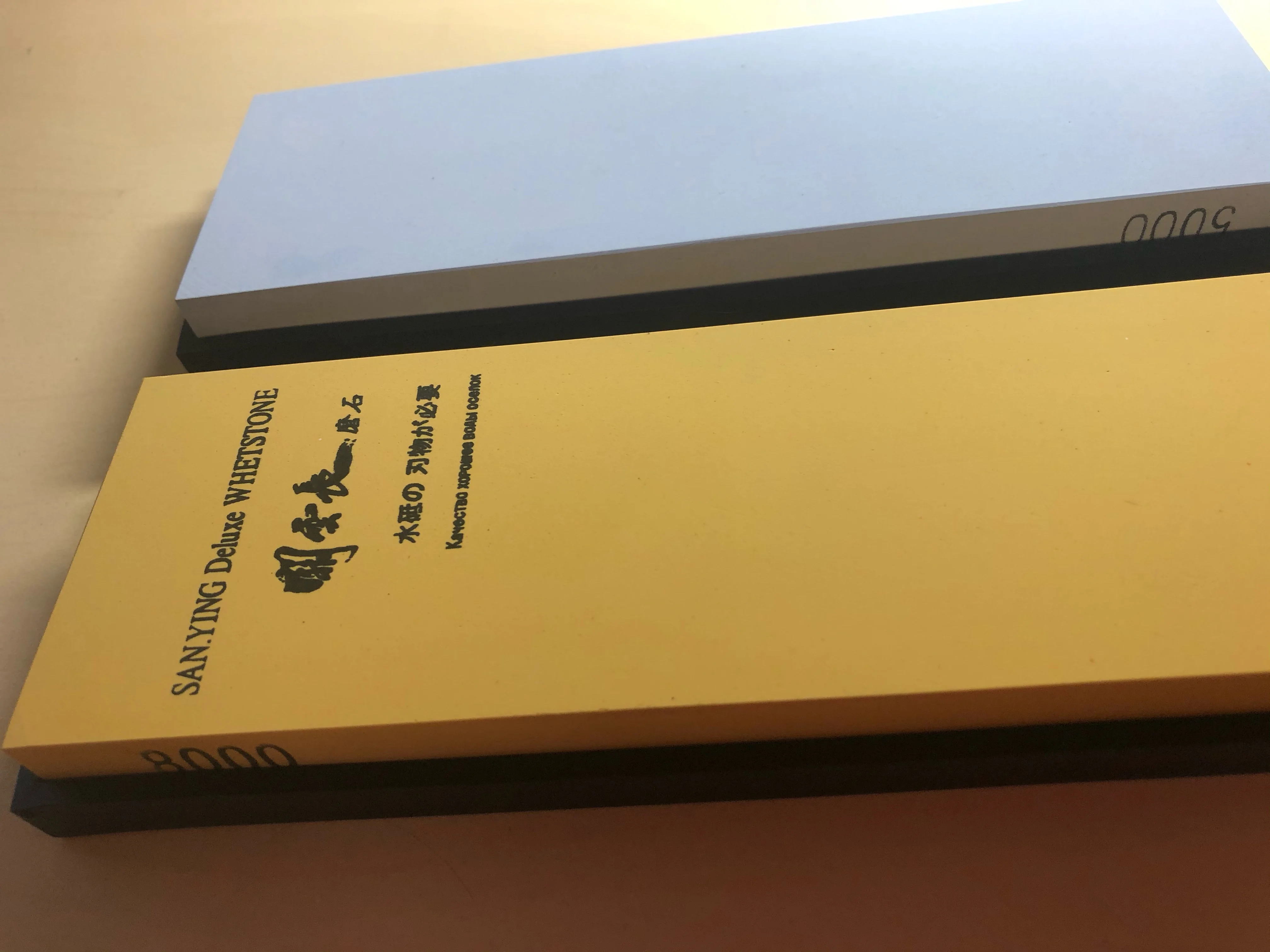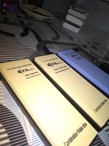 Отличного качества камни, но с гритностью напутано капитально. Который на 8000 больше похож на 1000 или 800 а который на 3000 близок к своим показателям. Камни ровненькие и выглядят красиво. Удобные резиночки. К продавцу претензий нет, на камне цифры (8000) вводят в заблуждение.
