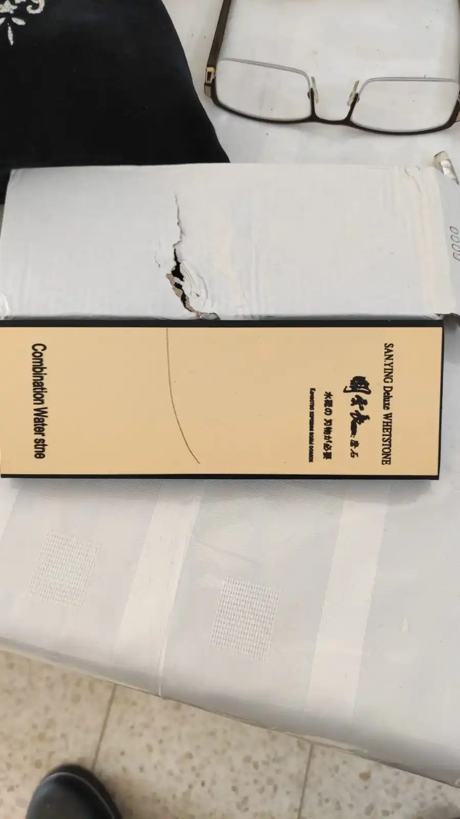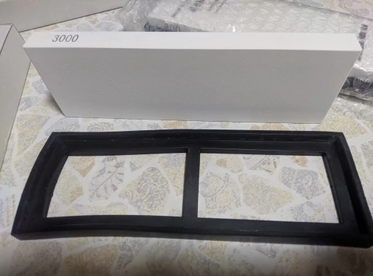 Камень 3000 грит, пришел без повреждений, хотя упакован был только в картонную коробку (повезло). По зернистости описанию соответствует, хотя я не большой специалист.